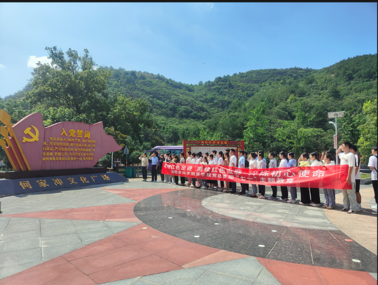 为庆祝中国共产党成立102周年,推动学习贯彻习近平新时代中国特色社会主义思想主题教育走深走实,6月30日,茶学院党总支师生党员在茶学院院长、党总支书记郭桂义的带领下,走进罗山县何家冲红色教育基地——红二十五军的长征出发地,开展“寻访红色足迹 赓续红色血脉 淬炼初心使命”迎“七一”主题教育。