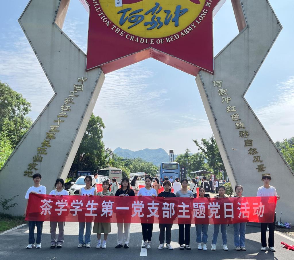 为扎实推进学习贯彻习近平新时代中国特色社会主义思想主题教育走深走实,在“七一”党的生日来临之际,6月30日上午,茶学院学生党支部在红二十五军长征出发地何家冲开展迎“七一”主题党日活动,以此向党的生日献礼,学院专职组织员、茶学学生第一党支部书记丁岚,茶学学生第二党支部书记梁玉洁带领学生党员共20余人参加活动。