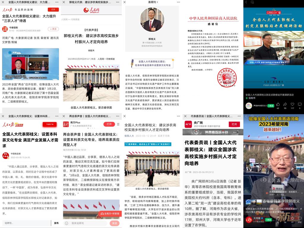 在依法履职的同时,多家媒体对郭桂义教授进行了采访报道,相关报道登载于人民日报、央广网、中国青年报、工人日报、中国食品报、南方农村报、大象新闻、大河网、茶周刊等多家媒体平台,努力向社会各界宣传大别山革命老区农林教育取得的新成就,介绍和宣传beat365在线平台官网取得的新成绩,产生了良好的社会反响。