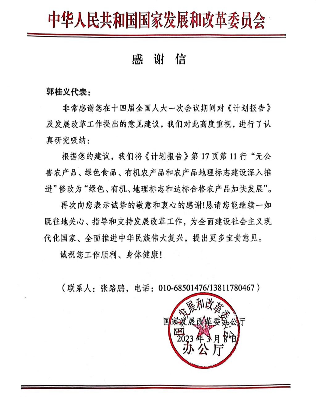 郭桂义在进行大量调研的基础上认真准备提出的建议。会议期间,他向大会提交了《关于面向全国涉农高校实施乡村振兴人才定向培养的建议》《关于在本科专业目录外设置茶文化专业的建议》两条建议。在《关于面向全国涉农高校实施乡村振兴人才定向培养的建议》中,郭桂义提出,要强化涉农专业招生和就业政策支持,实施乡村振兴人才定向培养计划,同时大力提升“三农”人才任职期间的待遇,真正提升基层对人才的吸引力以及人才在基层的稳定度,切实为实施乡村振兴,特别是老区振兴发展输送更多优秀人才。在《关于在本科专业目录外设置茶文化专业的建议》中,郭桂义提出,2022年11月29日,我国申报的“中国传统制茶技艺及其相关习俗”项目,经联合国教科文组织保护非物质文化遗产政府间委员会评审通过,列入联合国教科文组织人类非物质文化遗产代表作名录。茶产业的发展和茶文化的传承对茶文化人才素养提出了更高的要求,高职茶与茶文化相关专业人才培养已不能满足茶文化产业发展的人才需求,设置本科茶文化专业是非常急迫而必要的。