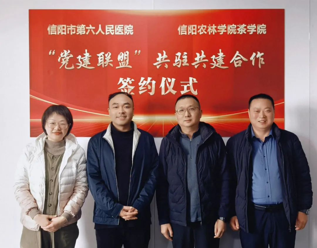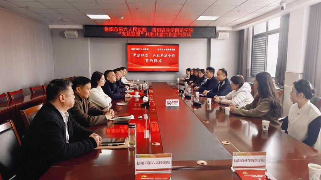 3月8日,茶学院党委与信阳市第六人民医院党委党建联建项目签约暨“茗心工作坊”揭牌仪式在信阳市第六人民医院举行。茶学院党委书记王鹏、院长孙慕芳及部分学院教师参加。