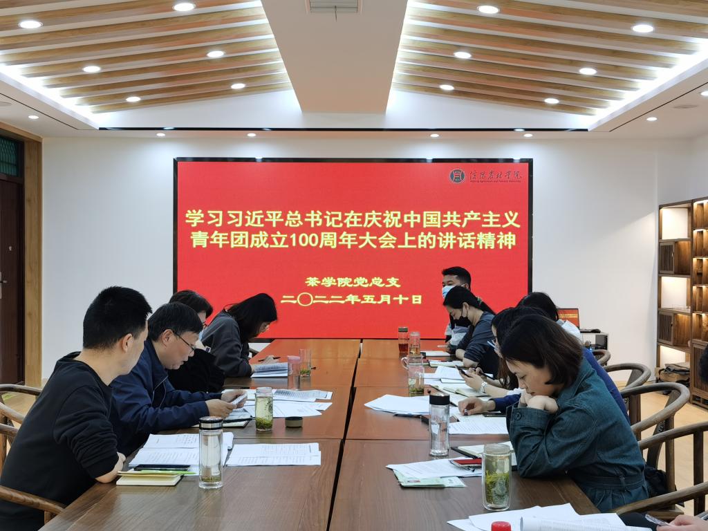 茶学院党总支集中学习习近平总书记在庆祝中国共产主义青年团成立100周年大会上的讲话精神