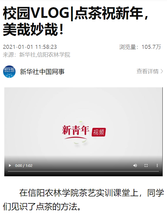 新华社转载报道茶学院茶艺实训课,点击链接查看详情。