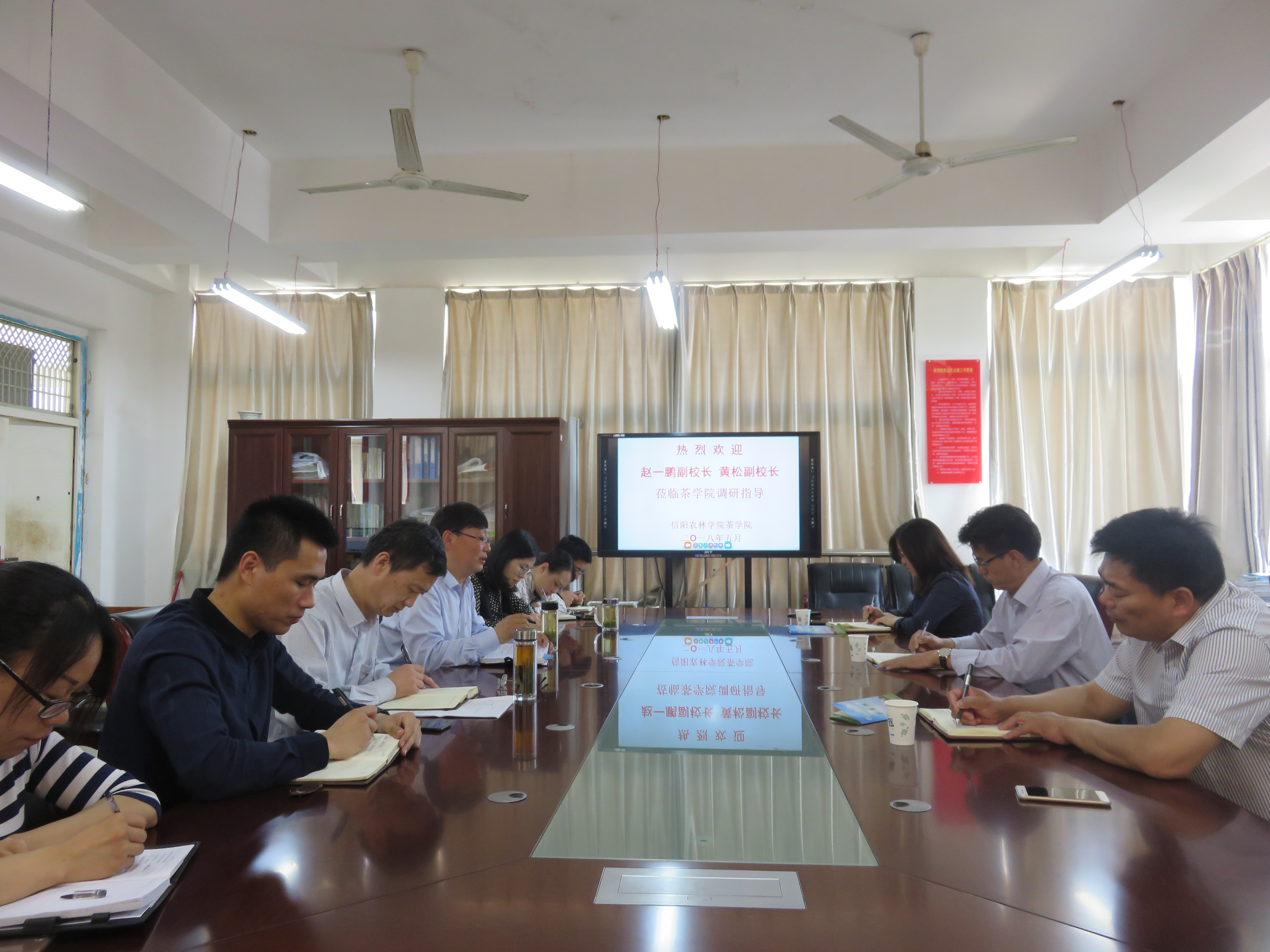 5月10日上午,赵一鹏副校长和黄松副校长在学校办公室主任张婷陪同下莅临茶学院调研指导工作。茶学院院长郭桂义、党总支书记袁丁,以及部分科级干部和教师参加了调研座谈会。