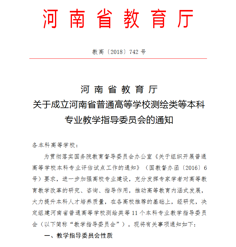 根据《河南省教育厅关于成立河南省普通高等学校测绘类等本科专业教学指导委员会的通知》(教高【2018】742号),我院院长郭桂义教授被聘任为植物生产类本科专业教学指导委员会委员。