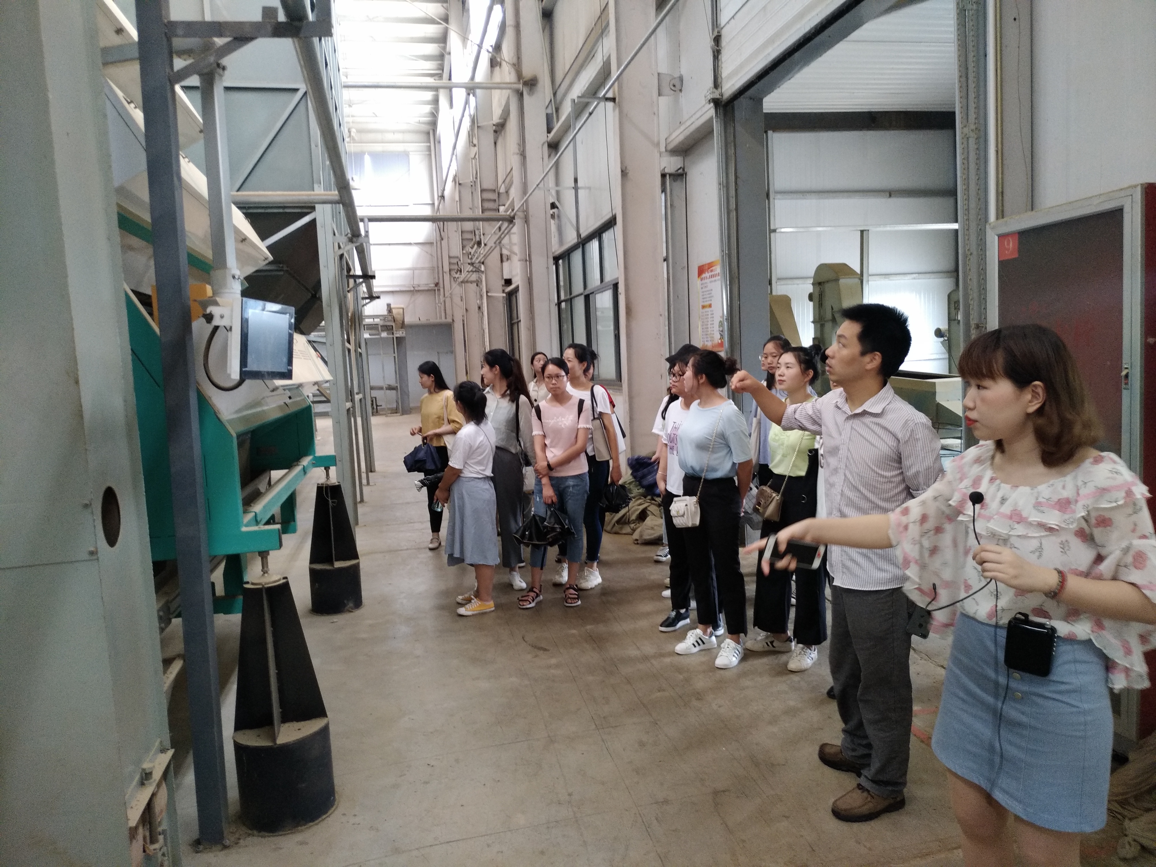 卢氏茶叶公司金牛山茶厂负责人张婷从公司发展历程、主营业务、茶叶生产现状等内容给同学们做了细致讲解,在此工作的我院2014级茶学(茶文化与营销)专业毕业生闵佳芃为同学们介绍了公司茶叶初制、精制机械现状,出口目的地、出口量、出口价格等相关内容。随后,王子浩指引同学们先后参观了该集团的一个茶叶初制车间,一个茶叶精制车间,一个茶叶包装车间,并详细讲解了茶叶圆筛机、抖筛机、色选机、车色机、拣梗机、匀堆机、袋泡茶包装机等茶叶机械的结构、工作原理、工作过程及注意事项。