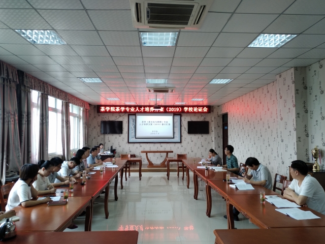7月4日,茶学院在1c201组织召开2019版茶学、茶学(茶文化与营销)、茶学(对本)人才培养方案学校论证会,副校长赵一鹏,教学质量监控与评估中心主任王学增,科技处处长赵聘,教务处副处长张淮,茶学院院长郭桂义、党总支书记袁丁、教学秘书陈义、教研室主任刘佳、张洁、组织员朱建梅,办公室主任池水婧、刘威、尹鹏、王子浩、杨转等专业教师参加论证会,论证会由院长郭桂义主持。