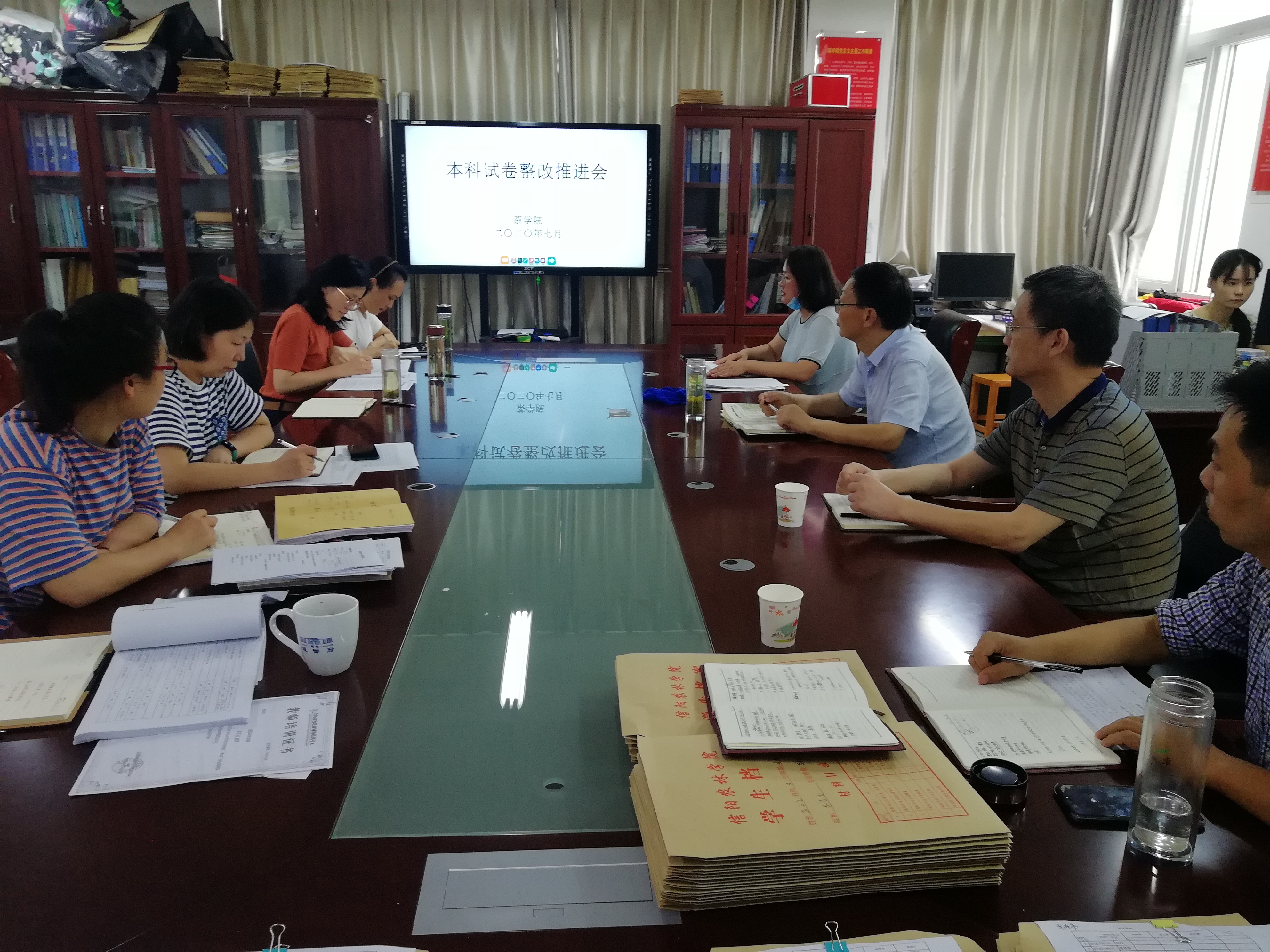 7月21日,茶学院在实验楼2c501办公室召开本科试卷整改推进和自查会,茶学院全体教师参加。