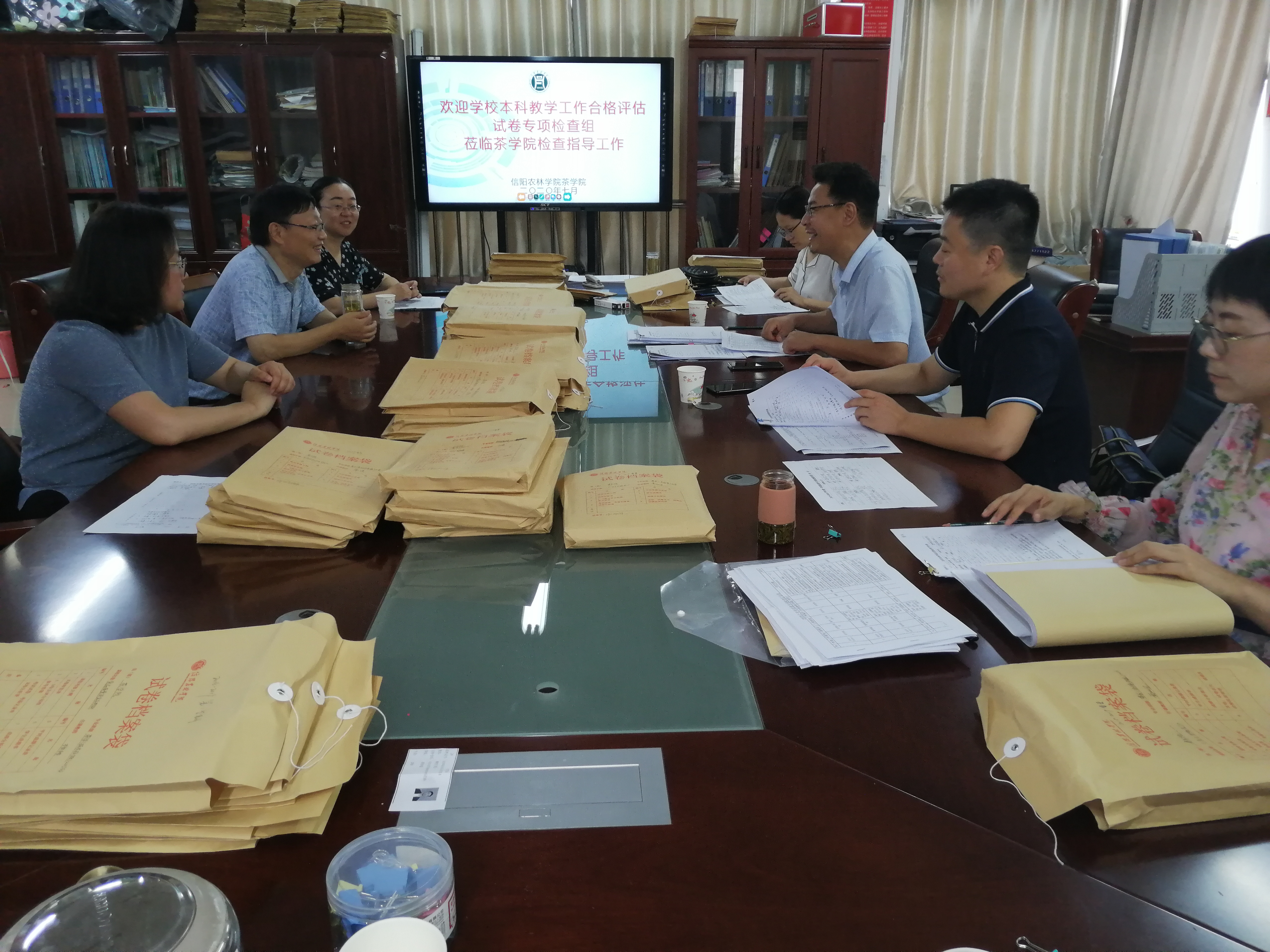 根据学校本科教学合格评估试卷专项检查工作的安排,7月29日上午,学校试卷专项检查第三督导组在杜永强组长带领下,对茶学院2019-2020学年秋冬学期试卷以及2018-2019学年试卷问题台账整改开展复查工作。茶学院院长郭桂义、教学副院长孙慕芳、教学秘书张永瑞及相关教研室专任教师参加。