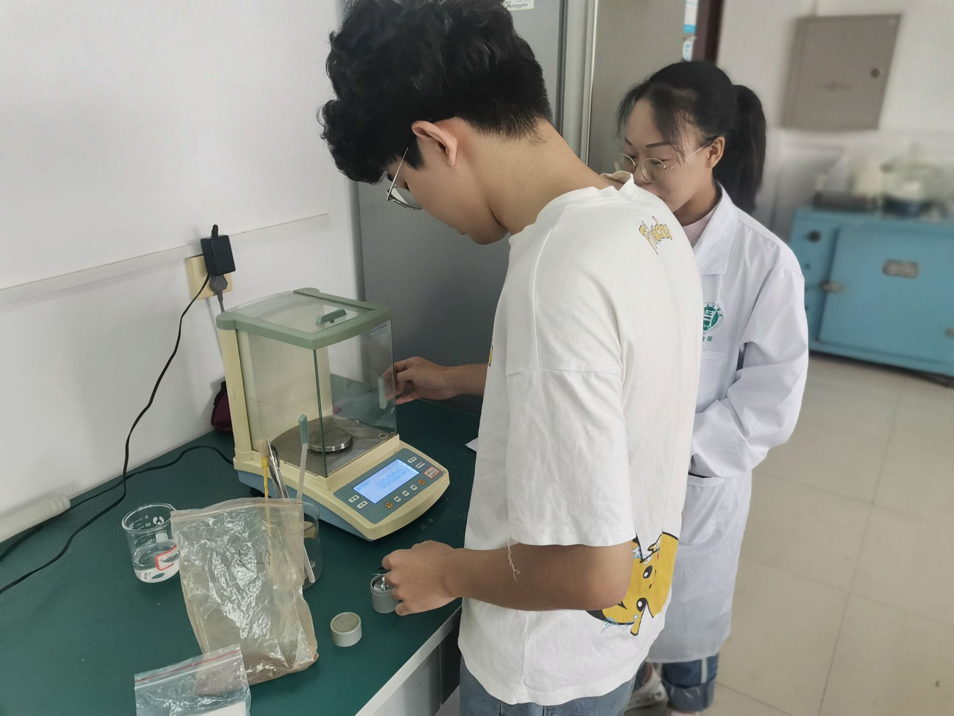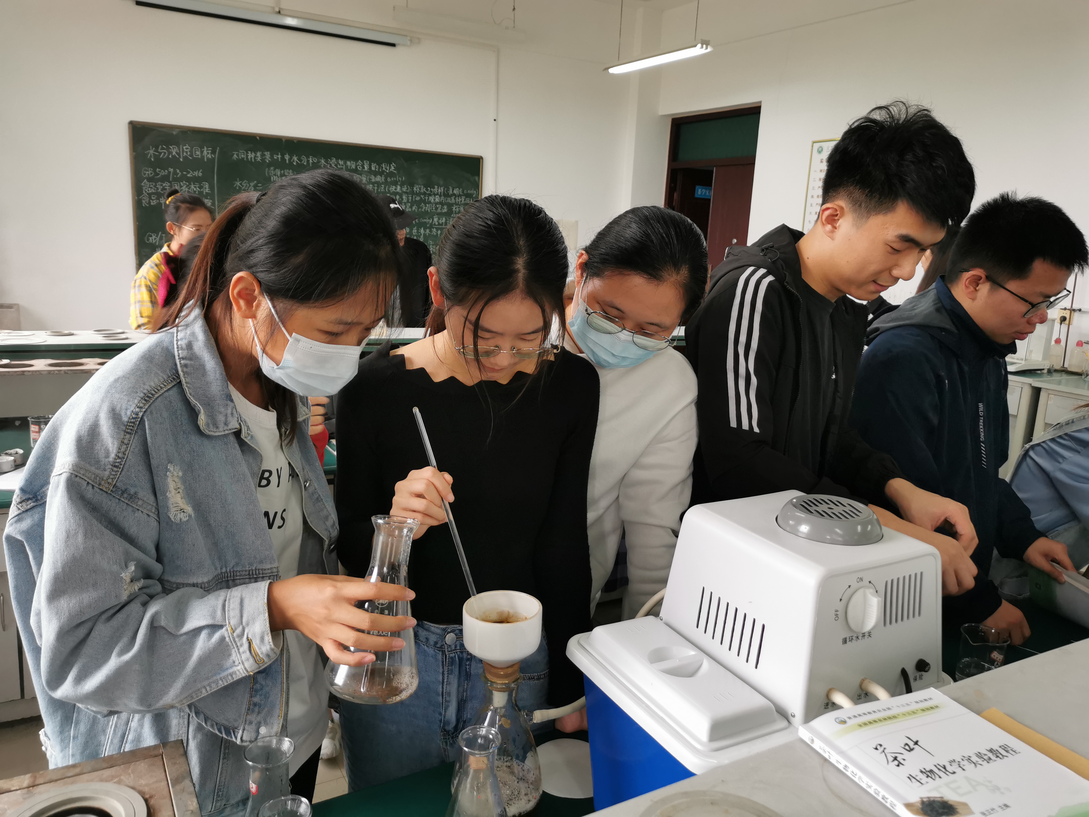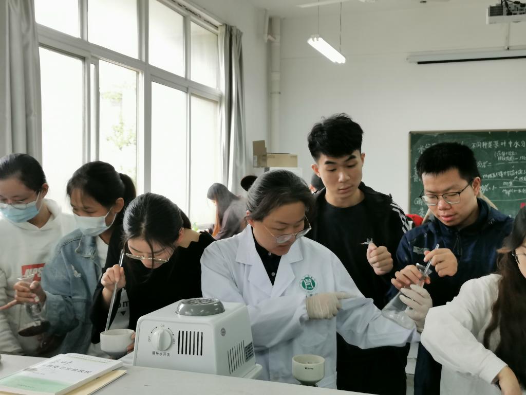 本次实习茶叶样品使用2017级本科《制茶学》实训周加工的红茶与绿茶,对茶样中的水分、水浸出物、茶多酚、氨基酸、咖啡碱等品质成分进行了测定及分析,整个实习分班分组进行。通过实习让同学们掌握和熟悉茶叶化学成分测定方法及相关仪器的使用,进一步理解加工工艺对茶叶化学成分和品质的影响。