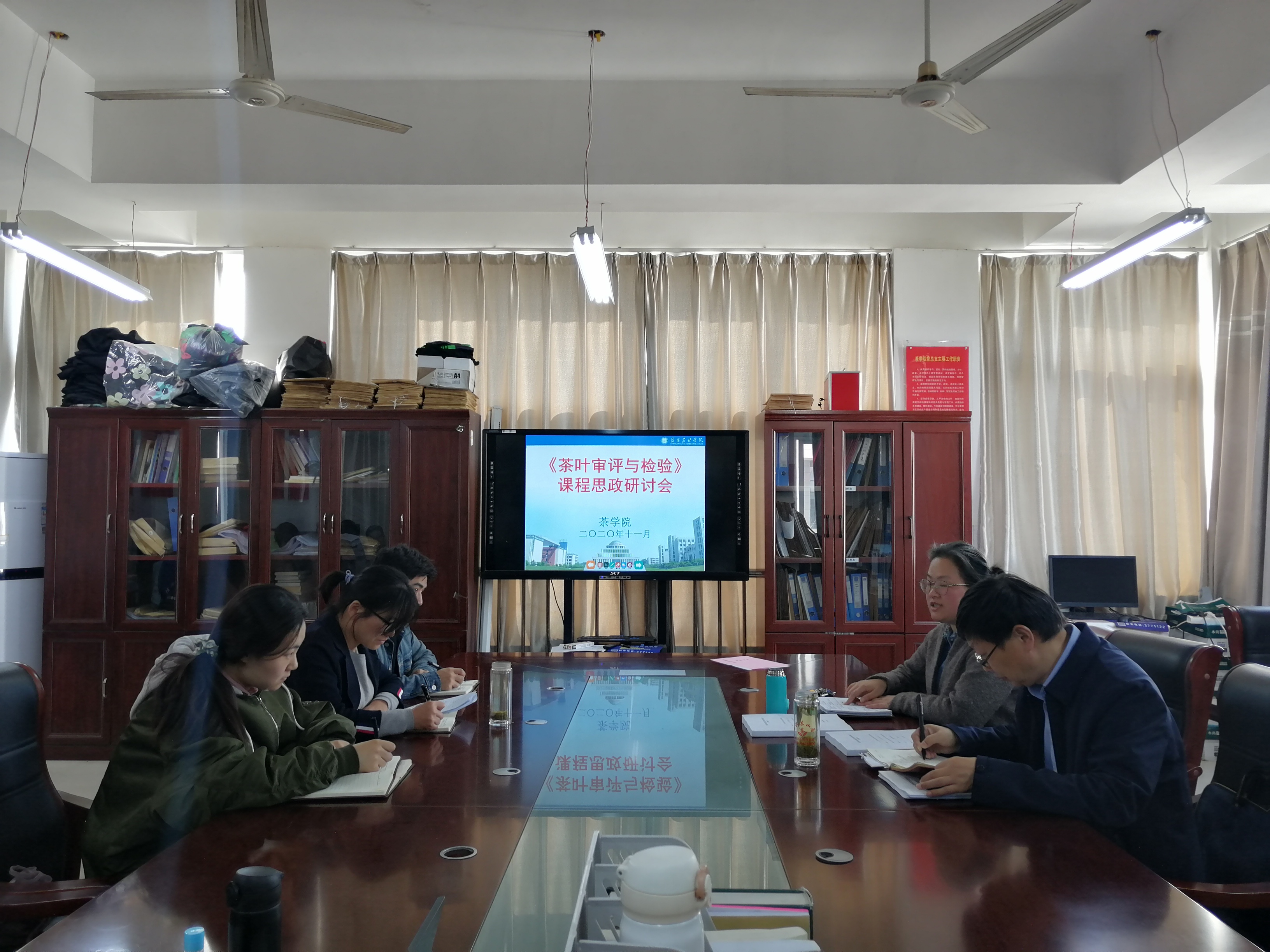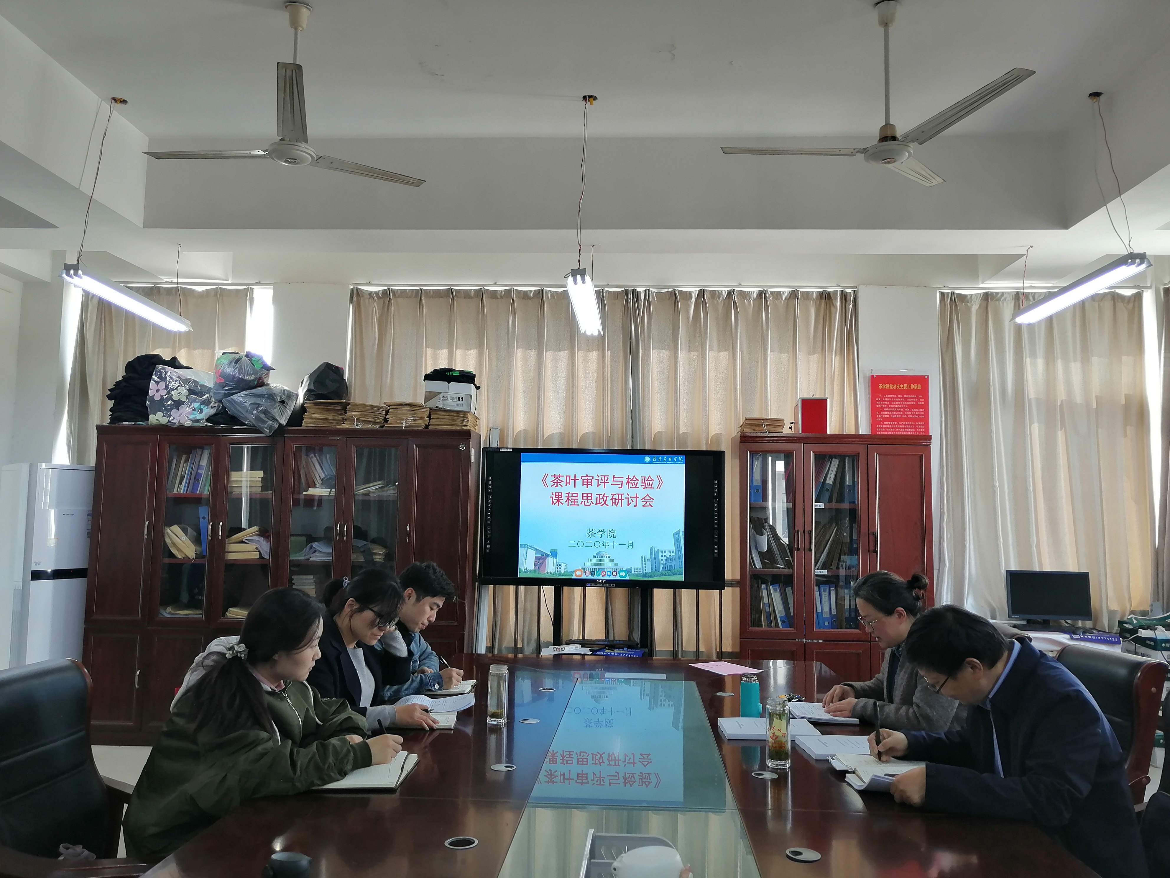 会上,大家根据教育部关于印发《高等学校课程思政建设指导纲要》的通知精神,从理想信念、价值理念、道德情操、精神追求、科学思维、工匠精神、生态文明等方面就如何开展《茶叶审评与检验》课程思政进行了充分研讨。大家对《茶叶审评与检验》课程教学大纲思政内容、典型教学案例的教学设计、思政融合发表了意见,并形成定稿。