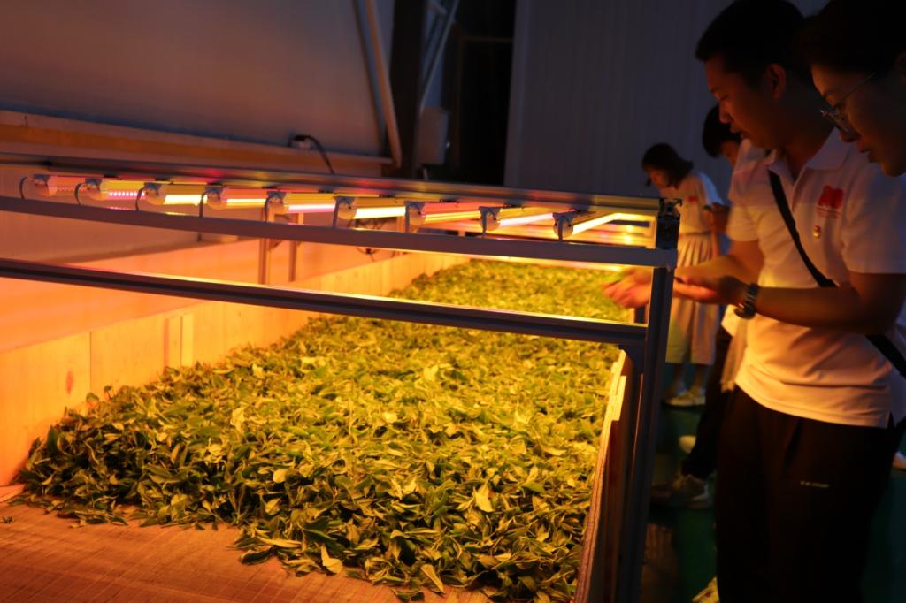 为了提高新进教师对信阳茶产业的了解,茶学院组织青年教师深入茶叶企业调研学习。 7月11日上午,在茶学院党总支副书记、茶学院分工会主席朱建梅老师、团总支书记王子浩老师带领下,茶学院组织丁岚、王晶晶、卫艺炜、孔亚帅、姜长岭等5位青年教师先后前往河南亿峰生态林业开发有限公司,信阳申林茶业开发有限公司茶厂、茶园、研学基地开展专业实践调研学习。