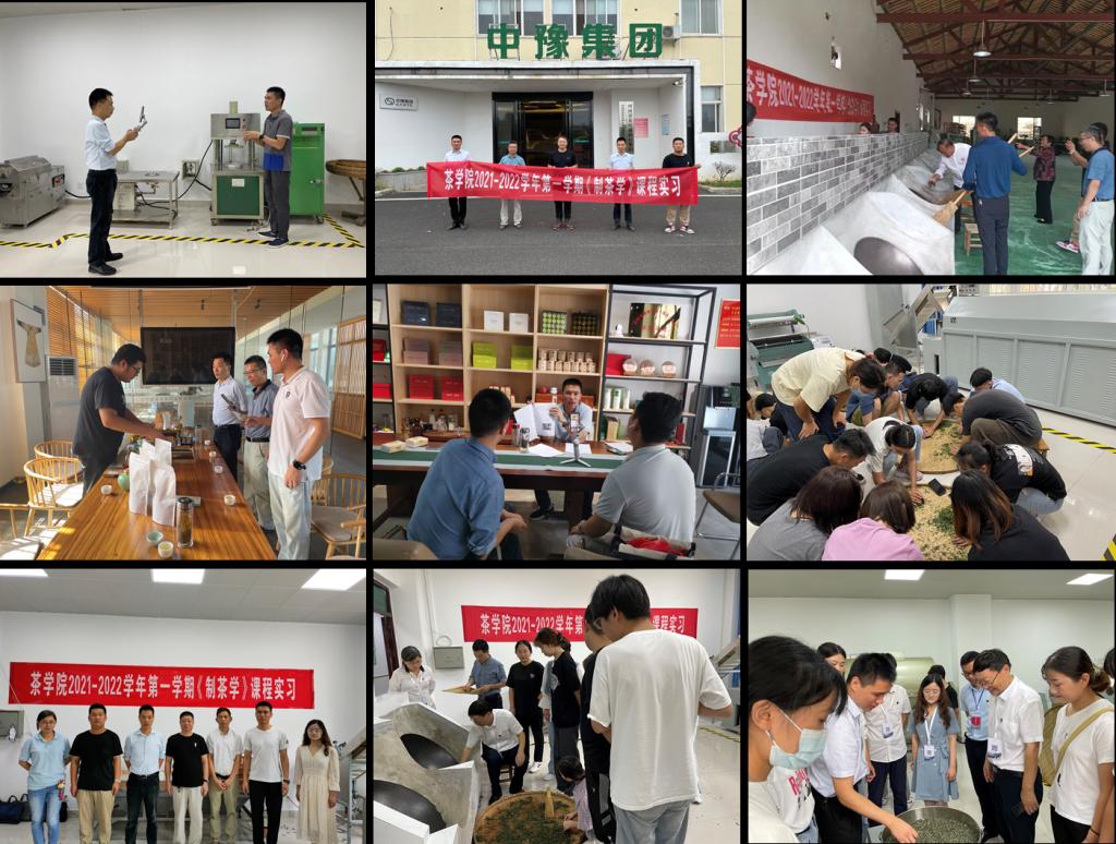 为了安排好《制茶学》教学实习,课程组反复讨论,制定了较完善的实施方案,本次《制茶学》实习内容如下:(1)茶叶机械操作实训(2)绿茶初制及精制实训;(3)信阳毛尖茶制作;(4)龙井茶制作;(5)碧螺春茶制作;(6)乌龙茶制作;(7)红茶制作。为确保本次课程教学效果,《制茶学》课程组教师不仅在茶学实验教学中心制茶实训室进行演示各种茶类的加工,同时深入茶企直播各种茶类实际生产过程并对其工艺及参数进行详细解读;其中信阳毛尖在周肖同茗茶厂,由国家级非物质文化遗产代表性项目信阳毛尖制作技艺国家级传承人周祖宏先生、信阳市级传承人肖兴亮为同学们演示传统手工信阳毛尖的制作,同学们在学习毛尖茶手工制作的同时加强了对中国优秀传统文化认识和了解;绿茶精制、红茶初制的现场直播以及乌龙茶的制作分别在中豫集团(卢氏)、遇鉴茶厂、盛德来茶厂直播,主要给同学们展示了绿茶从毛茶到商品茶的转变、红茶和乌龙茶的制作技艺以及信阳茶叶资源利用。为了保证实习效果,教学采用校内实验室直播结合茶企实际生产直播的方式,考核采用分班分组,学生动手操作的方式,最后对所加工的茶叶进行分类审评。通过本次实习,学生们都表示受益匪浅。