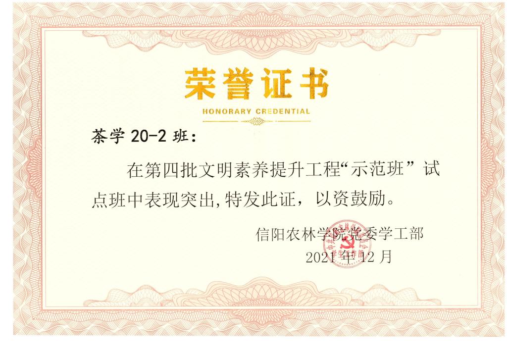 茶学20-2班在beat365在线平台官网各方面表现良好,在2020-2021学年获校级“先进班集体”、第四批文明素养提升工程“示范班”试点班中被选为文明示范班级。在学习生活中,班级同学积极响应学校劳动教育号召,在班长王成涛的带领下打扫图书馆、清理校园内垃圾、打扫学校积满灰尘指示牌以及路标。