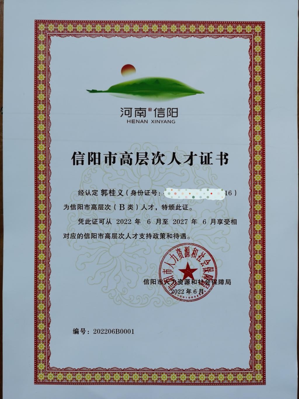 根据《信阳市高层次人才认定和支持方法》和《关于做好2021年信阳市高层次人才认定工作的通知》的要求,信阳市开展了高层次人才认定工作,茶学院20名教师被认定为信阳市高层次人才,其中教育部高等学校名师奖获得者、“中原千人计划”中原领军人才中原教学名师、二级教授、茶学院院长、党总支书记郭桂义被认定为高层次人才B类领军人才,全市仅有5名;D类骨干人才1人;E类青年人才18人。