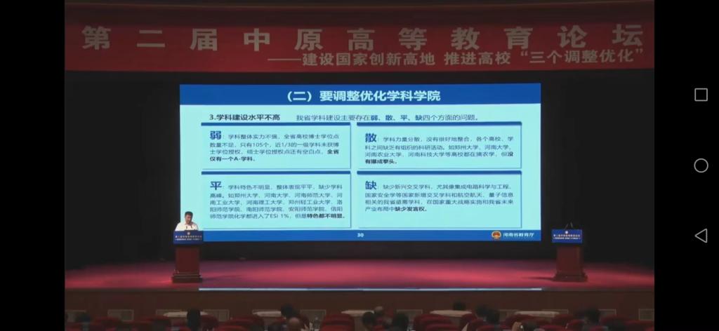据悉,第二届中原高等教育论坛的主题是建设国家创新高地,推进高校“三个调整优化”。省教育厅为深入学习贯彻习近平总书记关于高等教育的重要论述、省第十一次党代会精神和省委、省政府关于加快科技创新、高等教育改革发展的一系列重大决策部署,推动建设适应现代化河南建设需求的高等教育高质量发展新格局,委托河南省高等教育学会举办了此次论坛。 (撰稿人:刘佳 刘威 审核人:孙慕芳)
