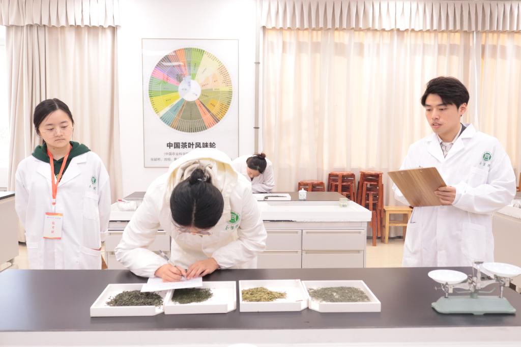 我院《茶叶审评与检验》课程是全国涉茶类国家级一流本科课程中唯一的一门茶学专业核心课程。茶学院高度重视实践教学和学生应用技能培养,不断加强实践教学条件建设,建有专业的茶叶感官审评实验室,并建有人社部和财政部国家级评茶员技能大师工作室,逐步推进“学、赛、创”三位一体的“理论实践结合,课内课外结合”实践育人模式。通过组织实施本次评茶技能竞赛,“以赛促学”,激发学生的兴趣和潜能;“以赛促教”,促进老师不断改革教学方法;强化学生技能培养,提升学生技能培训质量和效果。多年来,茶学院一直推行“双证书”制度,毕业生除毕业证书外,还拥有“评茶员”、“茶艺师”等职业资格或职业技能等级证书。