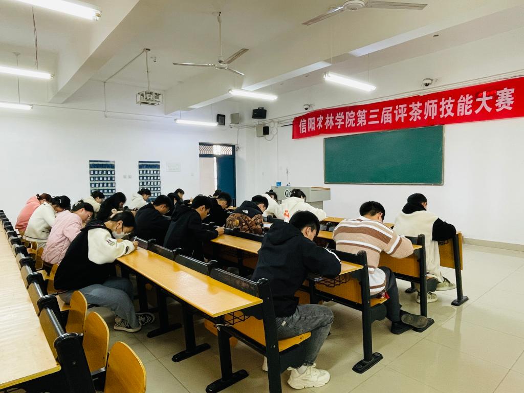 为深入贯彻落实习近平总书记对技能人才工作的重要指示精神,高质量推进“人人持证、技能河南” “人人持证、技能信阳”建设,建立完善学生职业技能竞赛体系。beat365在线平台官网于11月21日、26日举办了第八届茶文化节重要活动之一—beat365在线平台官网第三届评茶师技能大赛。大赛由茶学院主办,茶文化与营销教研室、茶学教研室、茶学实验教学中心、郭桂义国家级技能大师工作室承办。茶学院党总支书记、院长、国家级技能大师工作室领办人郭桂义教授担任大赛专家组组长,茶学院朱尧、王杉、苏丹、王晶晶四位老师担任裁判,大赛由朱尧、苏丹两位老师具体组织实施。