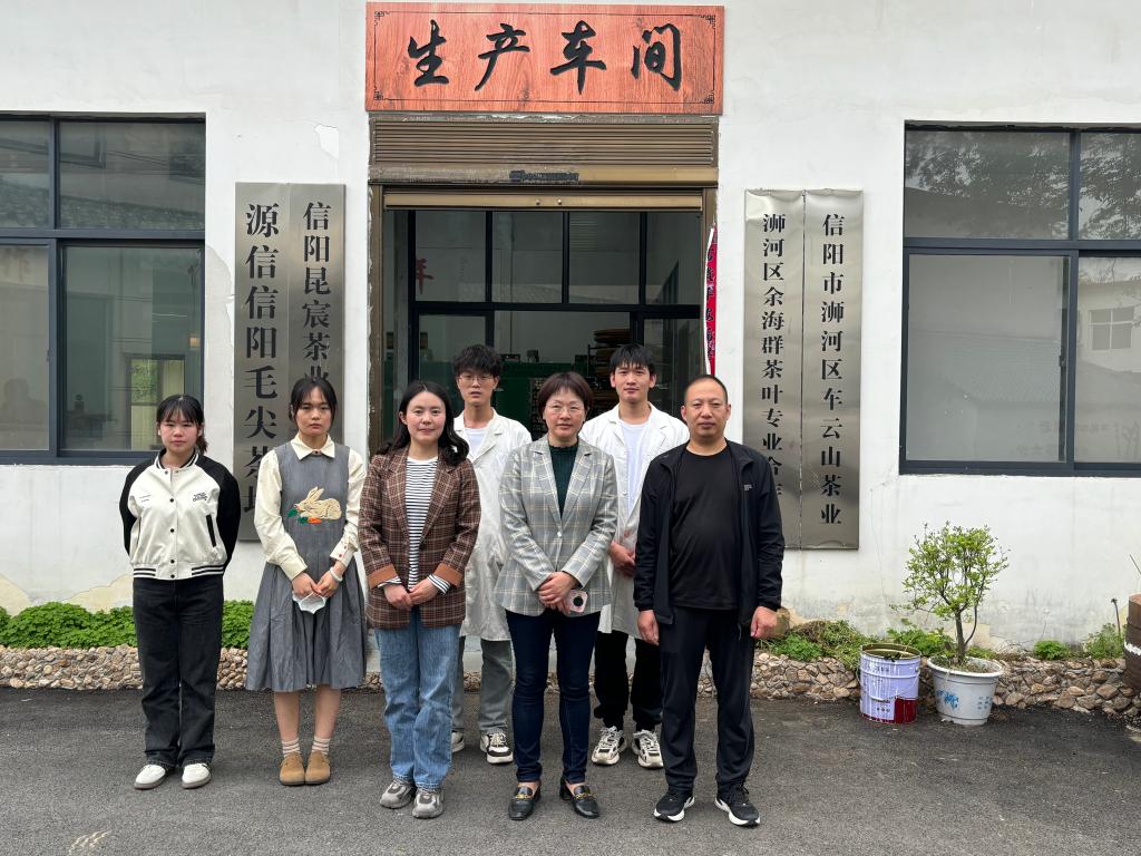 生产实习是茶学专业人才培养的重要环节。2024年4月13至14日,茶学院院长孙慕芳教授带领茶学院副院长尹鹏副教授、生产实习主要负责人苏丹和专任教师张向娜到浉河区的信阳市浉河区遇鉴有机茶叶专业合作社、信阳市永涛茶叶有限责任公司、信阳市明君子茶叶有限公司、信阳市四望山小天茶叶有限公司、信阳茶都茶业有限公司、信阳市昆宸茶业有限公司等企业检查学生生产实习情况。