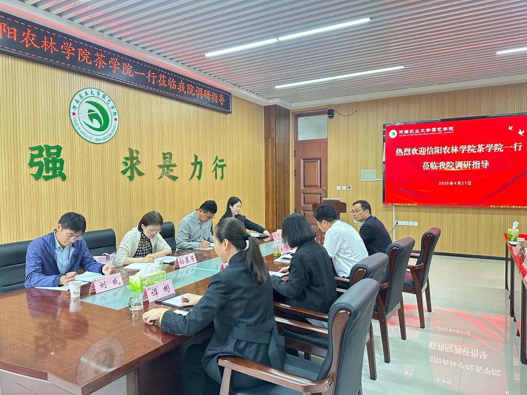 4月21日,茶学院院长孙慕芳带领副院长尹鹏、茶学教研室主任刘威和茶学实验教学中心主任苏丹到河南农业大学园艺学院调研2025版茶学专业人才培养方案制修订、学科建设、审核评估等工作,园艺学院院长郑先波、副院长胡建斌、副院长陈广辉、副院长谭彬、茶学系主任贺巍及茶学系全体教师参加调研座谈会,会议由郑先波主持。