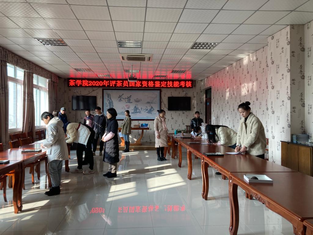 2020124日,茶学院和郭桂义国家级技能大师(评茶员)工作室与信阳市人力资源与社会保障局就业训练中心联合组织开展了中级评茶员国家职业资格鉴定。茶学院2017级茶学(创新拓展)、2017级茶学(茶文化与营销)(创新拓展)、2017级茶学(对本)、2019级茶学(专升本)、2018级茶艺与茶叶营销(普专)、2018级茶艺与茶叶营销(对专)共158名本专科同学参加了鉴定。茶学院专业教师陈义、刘佳、张永瑞和市就业训练中心工作人员担任考评员,专业教师张洁、池水婧、尹鹏、杨转、王杉、黄双杰、梁玉洁、朱尧、杜之正、王晶晶、夏雨参与了鉴定考务工作。