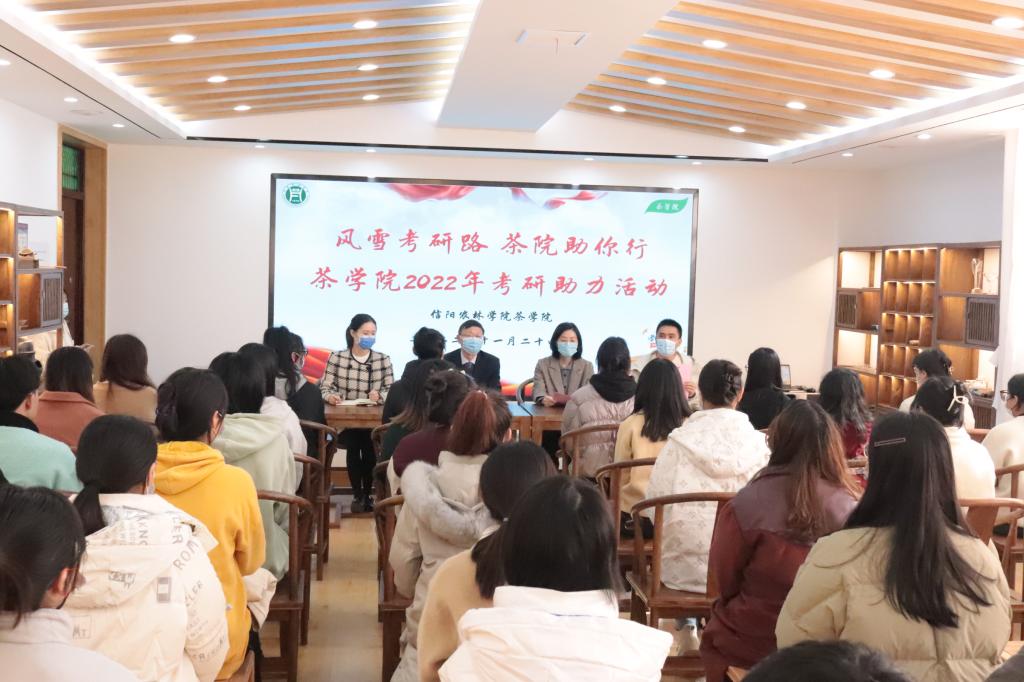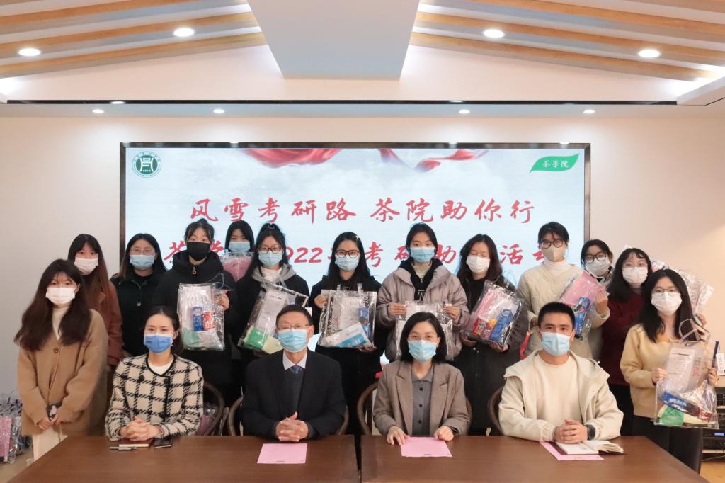 为了增强茶学院2023届考研学子的信心,为他们加油打气,11月24日在距离考研还有整整一个月的特殊日子,茶学院在1C201茶文化实验室举办了“风雪考研路茶院助你行”主题的2022年考研助力活动。茶学院院长、党总支书记郭桂义,院党总支副书记朱建梅,院团总支书记兼学生工作秘书、2023届毕业生辅导员王子浩,专职组织员、2023届毕业生辅导员丁岚、青年教师卫艺炜和2022年考研学生参加。活动由王子浩主持。