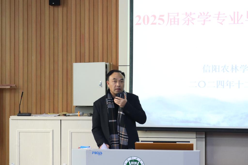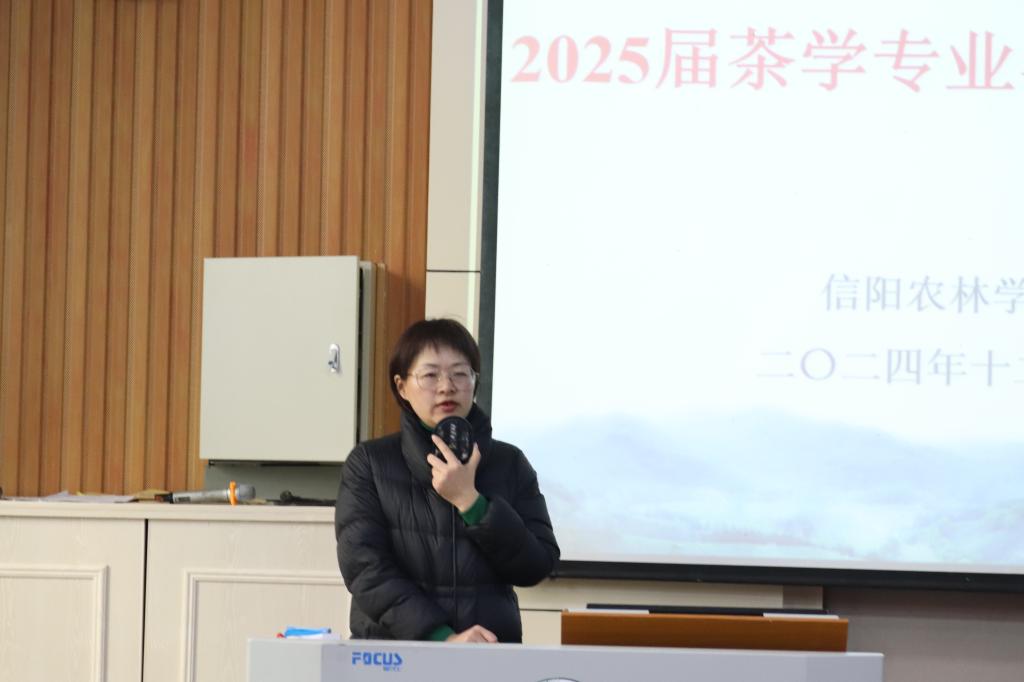20241226日,我院2025届茶学专业毕业实习动员会在一教E101成功举行。茶学院党总支书记王鹏、院长孙慕芳、党总支副书记兼辅导员王子浩、专职组织员及就业专员兼辅导员丁岚、茶学实验教学中心主任苏丹、教学秘书张向娜、2025届毕业生辅导员王晶晶、孔亚帅及2025届全体毕业生参加此次会议。会议由副院长尹鹏主持。