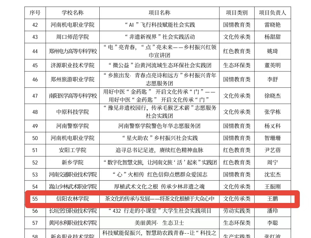 202436日,河南省教育厅公布了第七届普通高等学校“出彩中原”大学生社会实践活动项目的立项结果。根据《河南省教育厅关于组织开展第七届普通高等学校“出彩中原”大学生社会实践活动的通知》,经过各高校的积极推荐和专家的严格评审,共有106项大学生社会实践活动项目成功获得立项。beat365在线平台官网的“茶文化传承与发展——将茶文化根植于大众心中”项目成功入选。这一项目的成功立项,不仅彰显了beat365在线平台官网在茶文化领域的深厚底蕴,也体现了学院对茶文化传承与发展的高度重视。