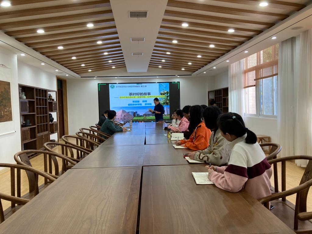 10月9日,茶学院茶苑大讲堂第五讲在1C201开讲,茶学院常亚丽博士应邀作了题为“茶叶籽的故事—茶叶籽油品质化学、保健功能、应用开发及研究进展”的学术报告。茶学院院长、党总支书记郭桂义,副院长孙慕芳、陈义及茶学院师生(包括部分2022级新生)共150余人通过线上线下形式参加了报告会,学术报告会由副院长陈义主持。