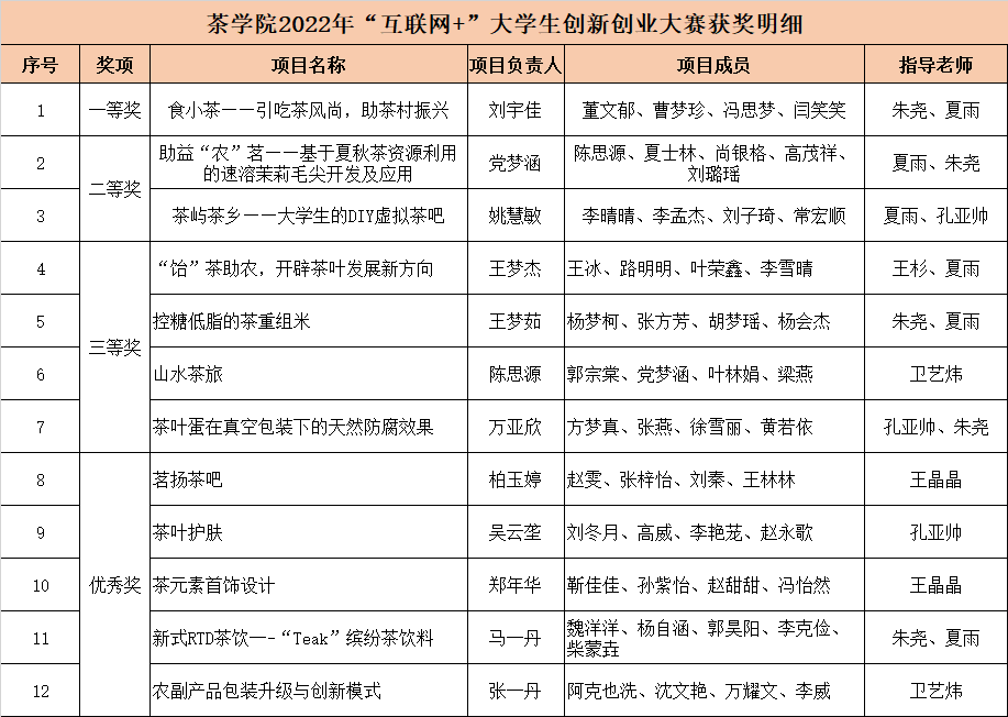 茶学院举办2022互联网+”大学生创新创业大赛获奖项目颁奖仪式
