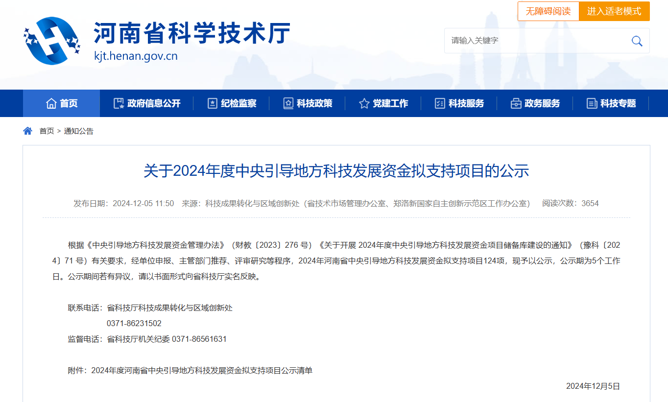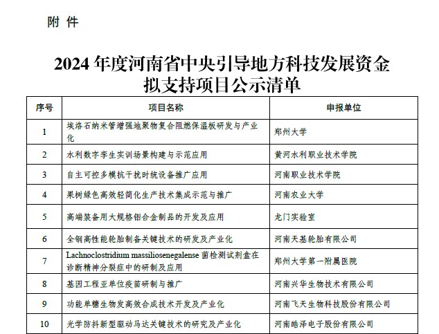 2024年度河南省中央引导地方科技发展资金项目重点支持省内高校、科研院所、企事业单位实施科技成果转移转化项目,围绕河南省优势和新兴产业以及区域特色产业技术成果需求,支持引导带动作用突出、有效提升产业创新能力、惠及人民群众广泛的科技成果转移转化示范项目,促进关键共性和先进适用技术推广应用,推动重大科技成果在豫落地转化和产业化。对获支持的项目每个资助60-200万元。