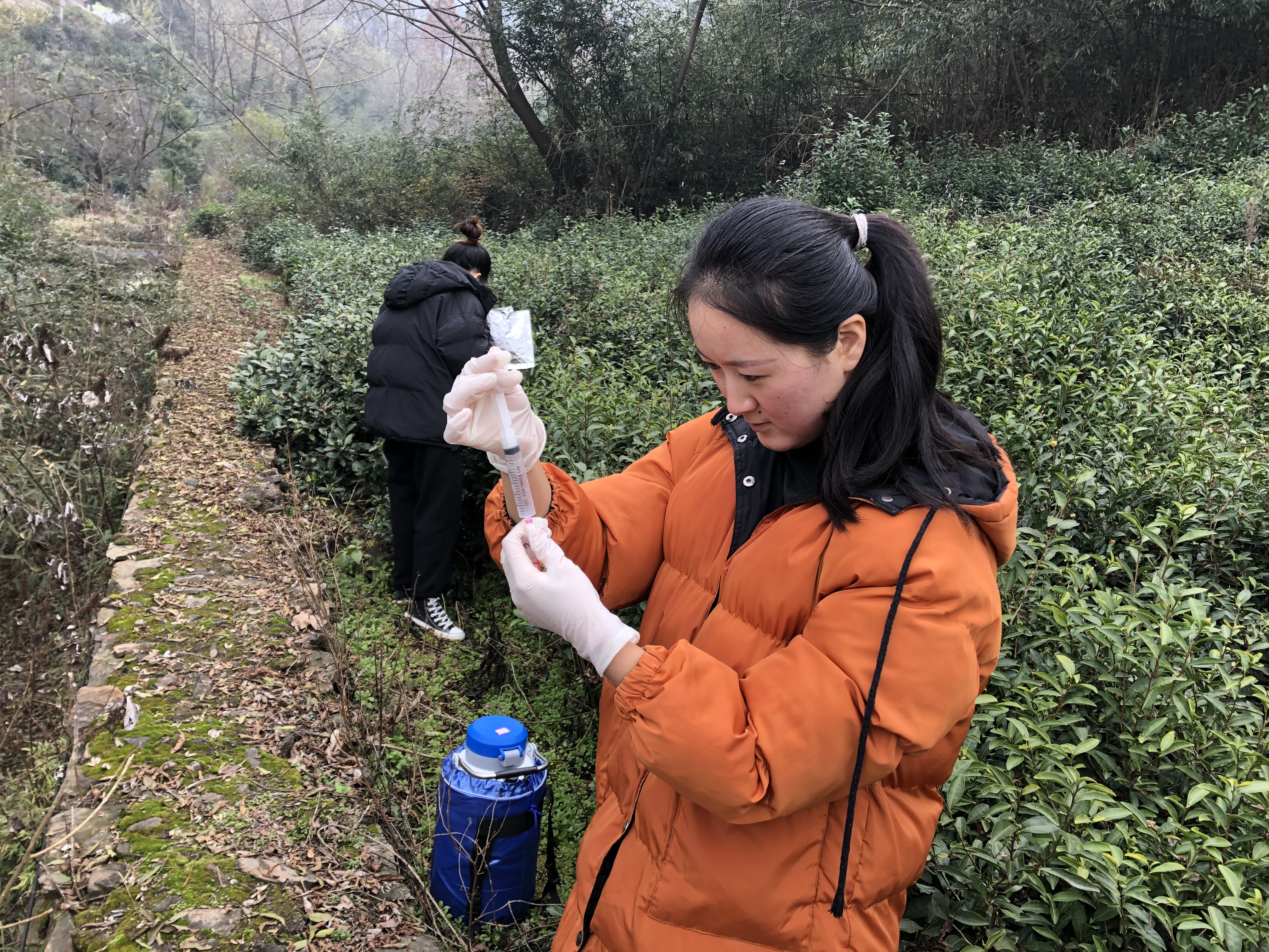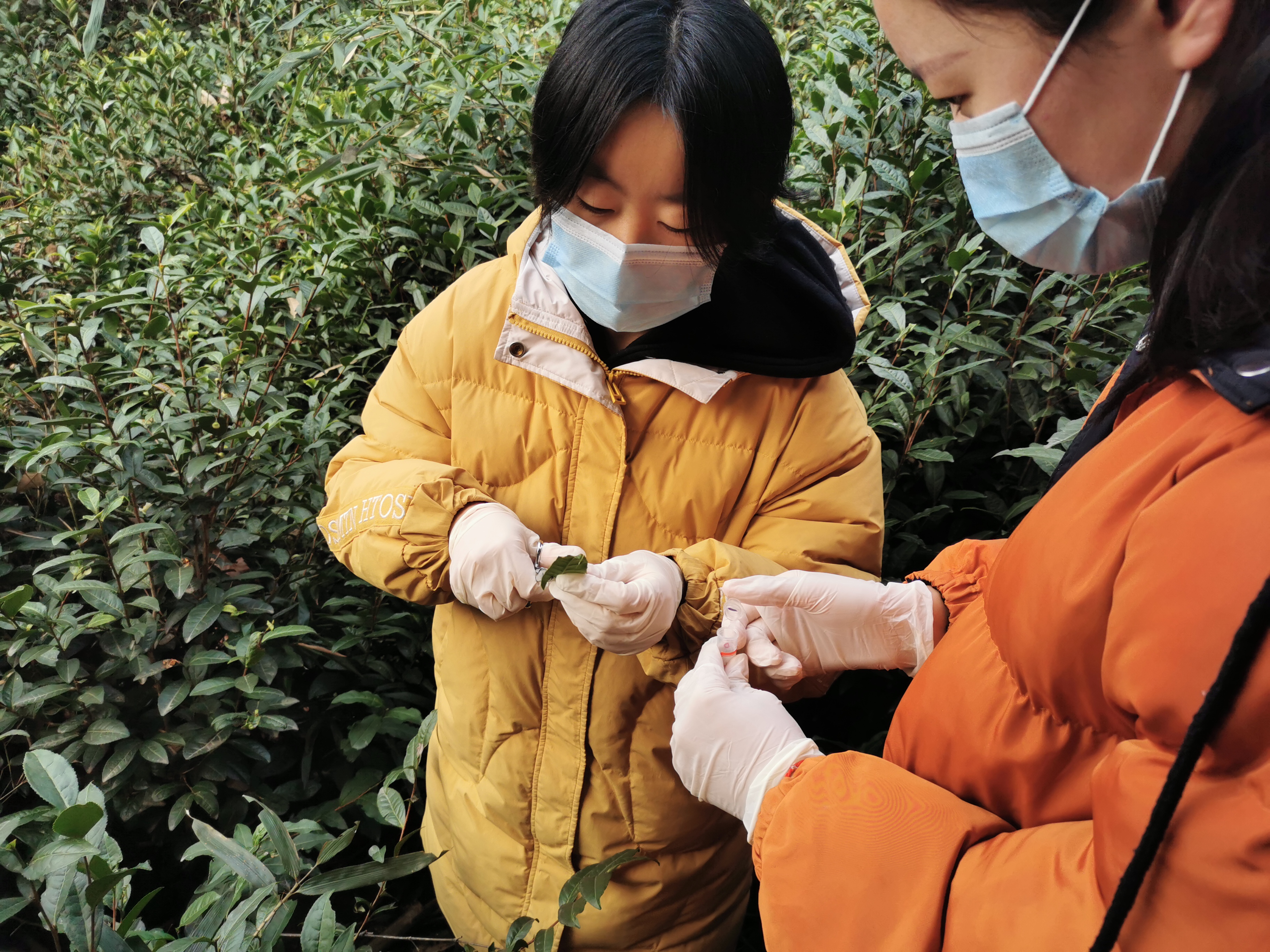 12月08日,茶学院青年教师罗金蕾博士带领3名学生到震雷山茶叶试验站采集茶树叶片样品,本次样品采集目的是为学生毕业设计做准备。