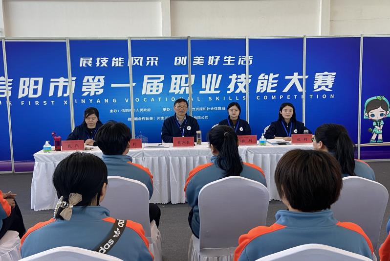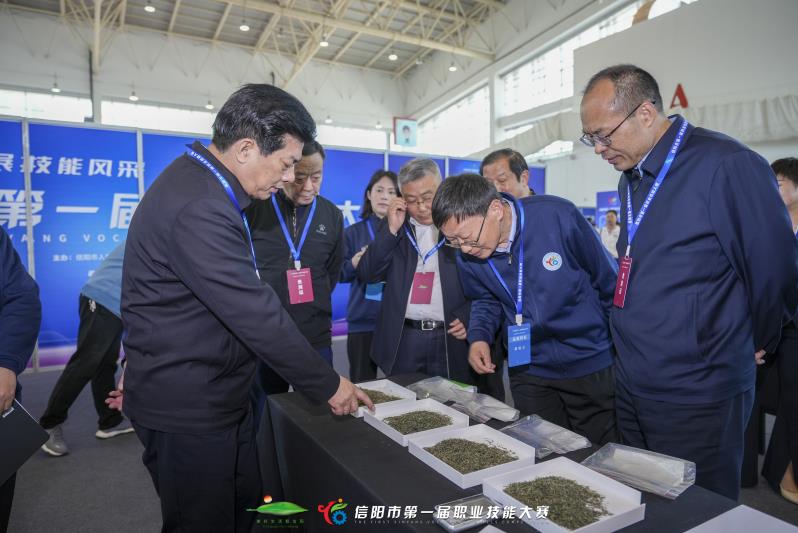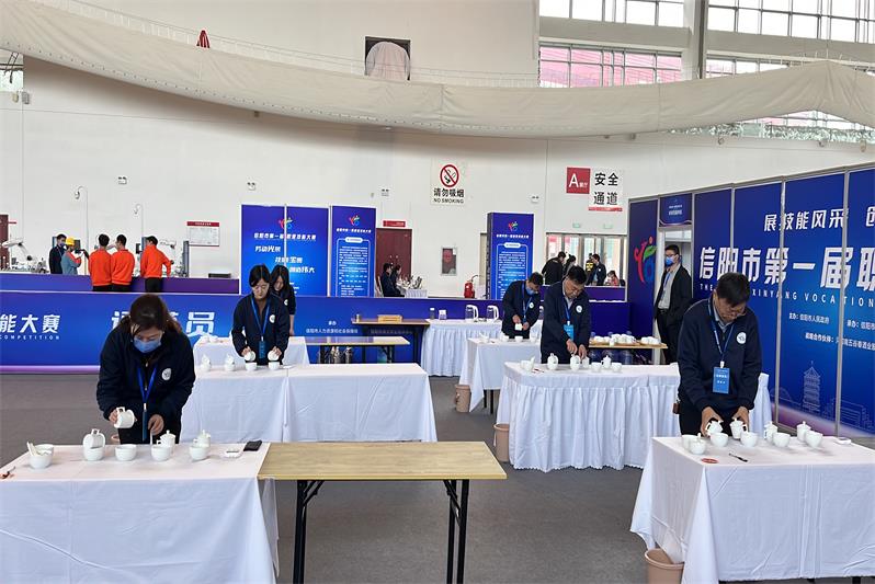 技能成才,技能报国。技能人才是支撑中国制造、中国创造的重要力量。为深入贯彻习近平总书记关于技能人才工作重要指示,培养更多高素质技术技能人才、能工巧匠、大国工匠,激发技能人才创新创造活力,提升技能人才的社会认可度和职业荣誉感。信阳市人民政府主办,信阳市人力资源和社会保障局承办,以“展技能风采 创美好生活”为大赛主题的信阳市第一届职业技能大赛于2023年4月8日至10日在信阳市百花会展中心举行。全国技术能手、国家级技能大师工作室领办人、茶学院院长郭桂义教授担任大赛总裁判长兼评茶员项目裁判长,茶学院茶文化与营销教研室主任刘佳担任茶艺师项目裁判,茶文化与营销教研室副主任王杉、专任教师苏丹博士担任评茶员项目裁判。