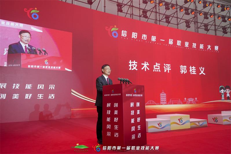郭教授在信阳市第一届职业技能大赛闭幕式总裁判长技术点评时向本次大赛的20个赛项取得优异成绩的60名选手表示热烈的祝贺,并作为颁奖嘉宾为获奖选手颁奖。大赛的举行,为今后我市更高质量办好综合性职业技能竞赛积累了经验,对今后全市的职业技能竞赛具有实践指导借鉴和引领作用,对推动我市职业技能竞赛规范化、常态化,实现“以赛促改、以赛促培、以赛促教”,高质量推进“人人持证、技能河南”工作,都具有重要的意义。(撰稿人:苏丹、王杉 审稿人:郭桂义)