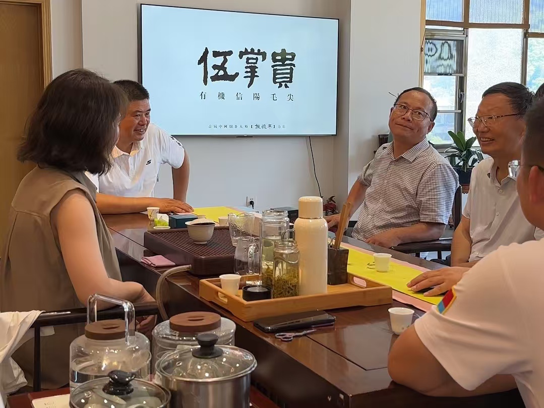 在车云顶峰茶叶科技有限公司与董家河镇纪检书记张徽、车云山村党支部书记、村委会主任罗超、信阳车云顶峰茶叶科技有限公司董事长伍德军进行座谈交流,一行人共同讨论了如何充分发挥车云山村对于信阳毛尖茶的种植、生产的历史文化优势,为宣传展示车云山茶文化底蕴、制茶车间的文化构建、共建茶文化美丽乡村提出了一些建议。郭桂义针对车云顶峰的茶产品包装提出作为茶叶企业的从业人员,要严格执行GB7718《食品安全国家标准 预包装食品标签通则》,特别是产品名称、等级,净含量等标注。