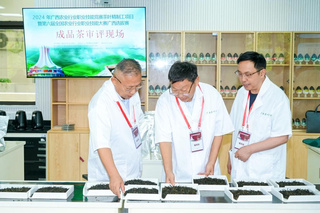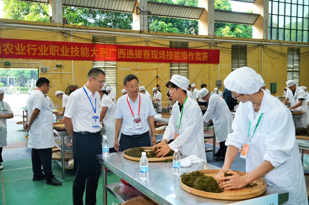 911日至13日,2024年广西农业行业职业技能竞赛茶叶精制工项目暨第六届全国农业行业职业技能大赛广西选拔赛在广西职业技术学院茶叶“双高”实训基地举办。本次比赛由广西自治区农业农村厅、自治区人力资源和社会保障厅、自治区总工会主办,广西茶叶学会、广西职业技术学院承办,自治区农林水利气象工会、自治区职业技能鉴定中心、自治区茶叶科学研究所、广西茶业协会、广西茶叶流通协会等单位协办。该赛事加工茶类为红茶,采取理论知识考试(闭卷)和技能操作相结合的方式进行。beat365在线平台官网茶学院二级教授、河南省豫南茶树资源综合开发重点实验室主任、河南省大别山实验室副主任、全国技术能手、评茶师国家级技能大师工作室领办人郭桂义应邀担任裁判,并担任理论考试命题专家。