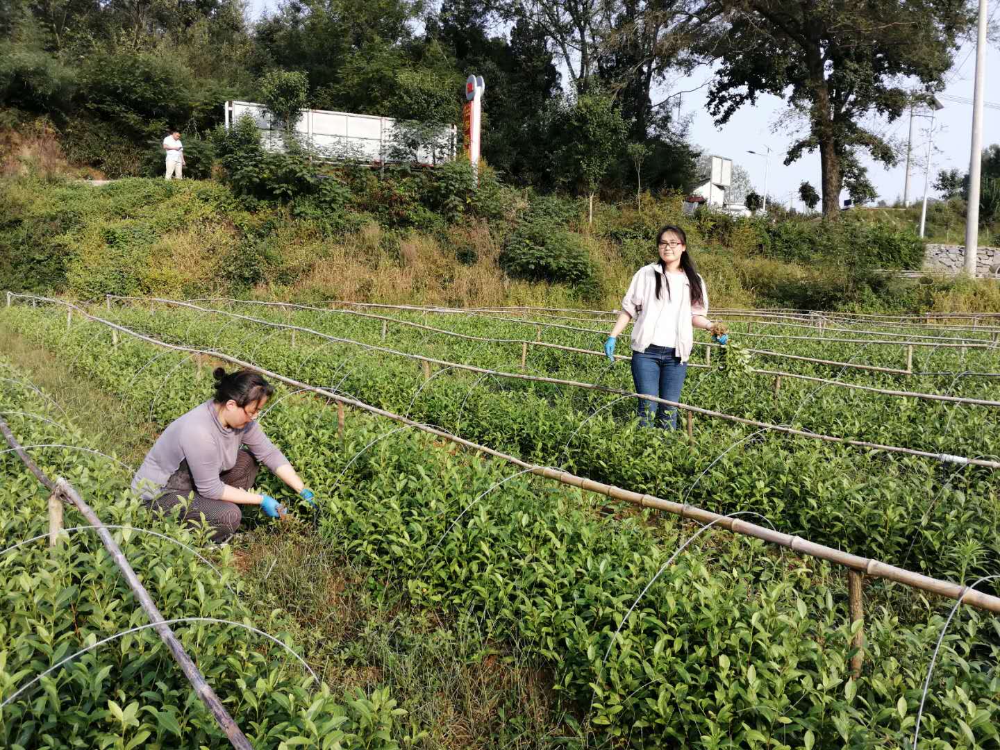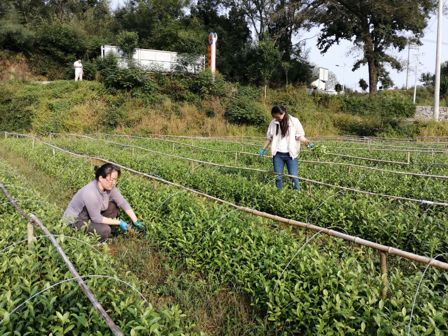 2020930-1010日,河南省豫南茶树资源综合开发重点实验室、茶资源利用与质量安全控制省级和学校创新型科技团队成员、茶学院副院长孙慕芳副教授和专业教师黄双杰博士先后两次分别到光山县赛山悟道茶叶生态有限公司和浉河区祥云茶叶有限公司开展国家重点研发计划项目“茶树生态经济型品种筛选及配套栽培技术(2019YFD1001601)”子课题“信阳毛尖生态经济型茶树品种筛选及配套栽培技术(2019YFD1001601-06)”,该项目由茶学院院长郭桂义教授主持。此行主要目的是采集一年生的中茶108和信阳10号的茶树扦插苗,为项目的顺利实施奠定良好的基础。(茶学院 黄双杰)