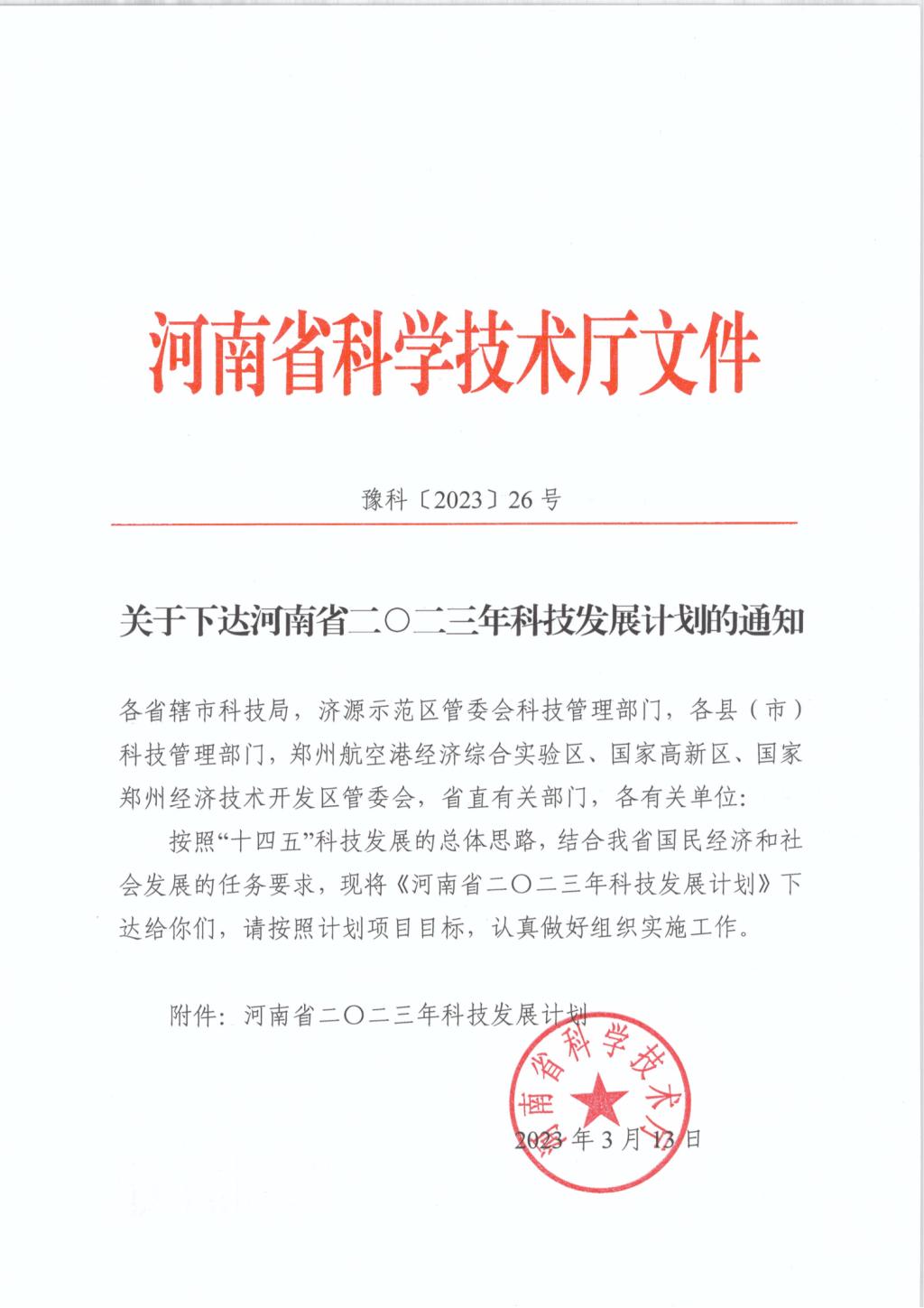 3月14日,河南省科技厅发文(豫科〔2023〕26号)下达了河南省二○二三年科技发展计划的通知,茶学院刘威申报的“豫南新梢抗寒茶树种质资源筛选、评价及其抗寒生理和分子机制研究”被批准为河南省科技攻关项目(项目编号:232102110212)。(撰稿人:刘威 审核人:陈义)