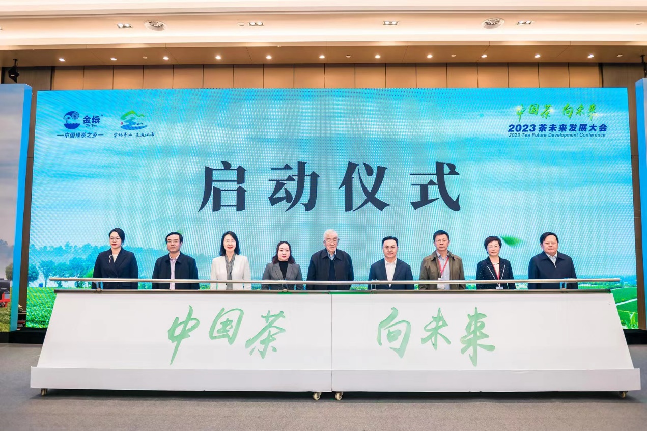 大会于2023年11月7日在江苏省常州市召开,中央候补委员、中国工程院刘仲华院士(湖南农业大学)和中国工程院陈宗懋院士(中国农业科学院茶叶研究所)出席会议。会议主要分为生态茶园参观、《2023茶未来发展大会(金坛)倡议》发布、刘仲华院士受邀发表主旨演讲和生态低碳茶园建设的专题报告等四部分。大会倡议内容为:坚持三茶统筹发展、坚持文化价值传承、坚持绿色低碳转型、坚持茶树育种创新、坚持茶园提档升级和坚持茶叶品质创新。刘仲华院士也表示我国茶产业发展中存在的主要问题为茶叶产销失衡和夏秋茶资源利用率有待提高。针对这一问题他提出稳定茶园面积、进一步精深加工和进行业态创新。在茶园生产管理等方面,刘院士强调要进行茶树品种优异化,茶园管理生态化、绿色化、管理信息化和茶业全程标准化。大会报告由中国农业科学院茶叶研究所、南京农业大学、中国茶产业联盟、生态环境部有机食品发展中心等高校和研究所的专家学者带来茶园建设的专题报告,主要涉及智慧茶园技术创新与应用、生态低碳茶园建设与配套技术推广、茶园减排固碳计量与实现路径、数字技术助力茶产业发展等方面的研究内容。