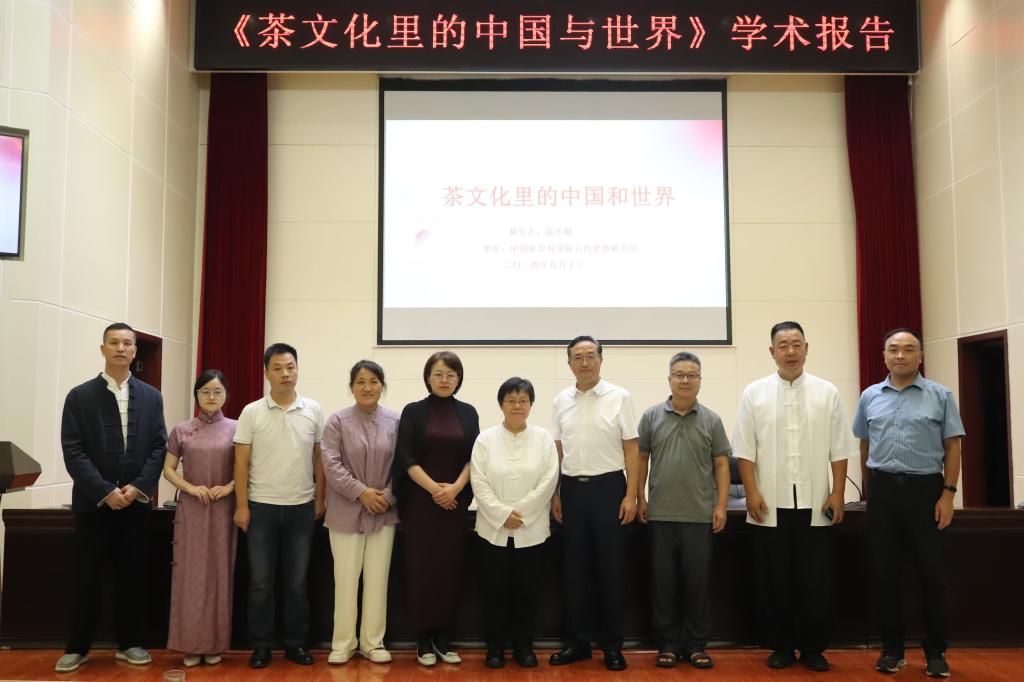 报告会上,陈院长简要介绍了沈冬梅老师的研究方向和研究成果。沈冬梅老师从茶出中国、茶文化、中国茶联通世界、茶产业与茶文化的发展等四个方面,以历史为脉络,以中国茶为中心,以茶文化为重点,为大家作了一场精彩纷呈的高水平学术报告。她嘱咐大家要认真学习茶文化,坚定文化自信,厚植爱国主义情怀。