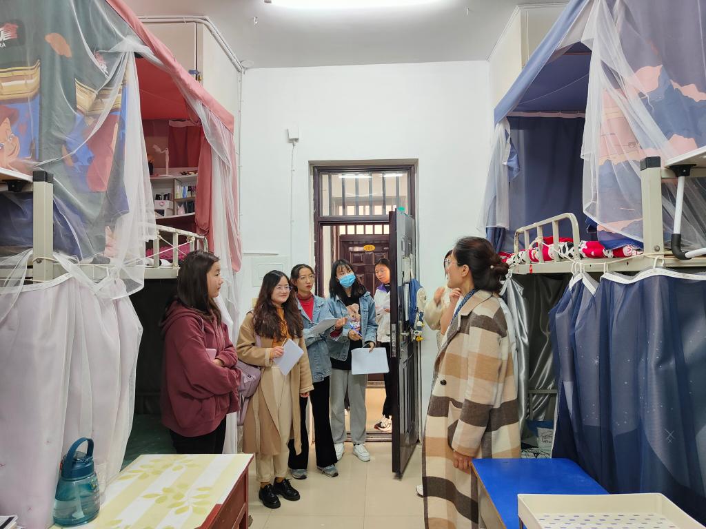 老师们与同学们深入交流,了解学生在校生活状况及学习情况,同时还叮嘱新生多注意宿舍安全。此次宿舍评比活动的开展,既排除了宿舍的安全隐患,又进一步培养了学生自觉养成良好的安全文明卫生习惯,为我院学生营造安全、文明、和谐的生活环境奠定了坚实基础,对打造宿舍特色文化、增强学生环境卫生意识和安全防范意识起到了积极作用。