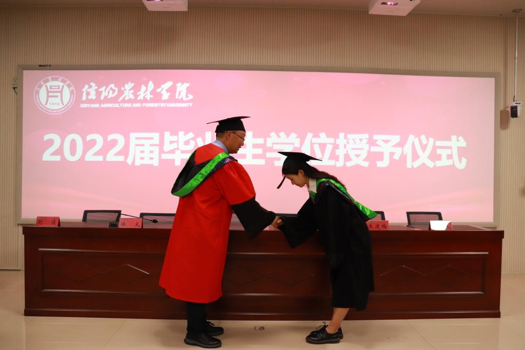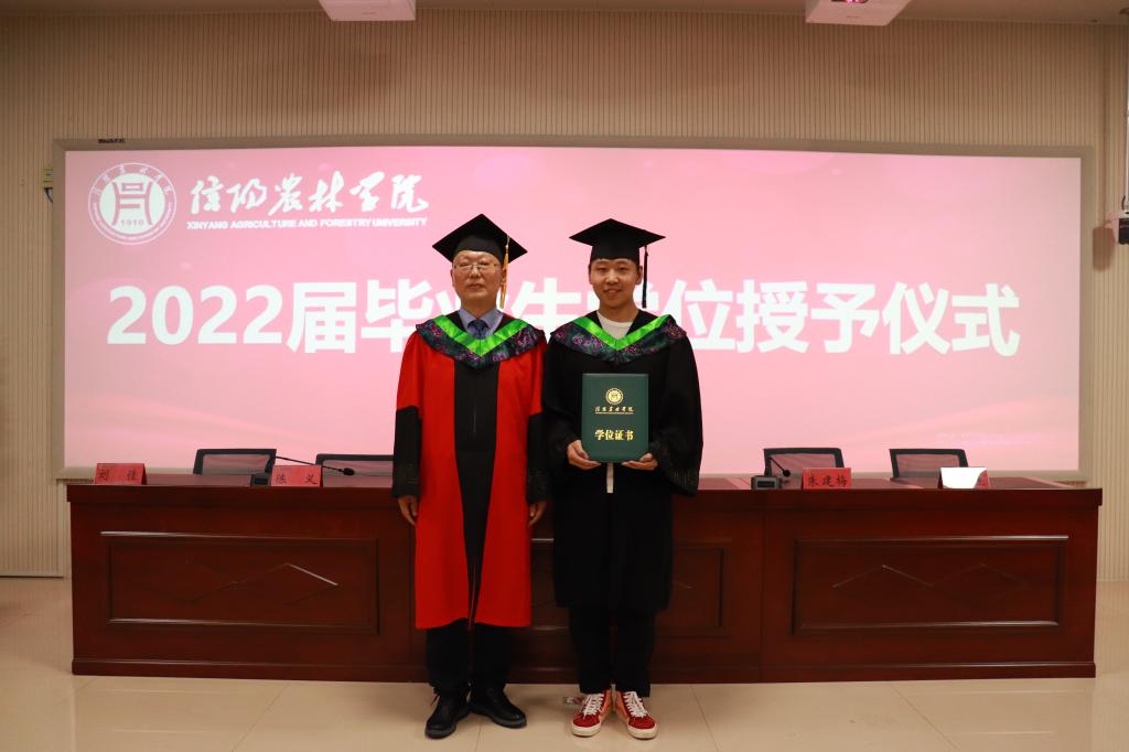 陈义宣读了茶学院2022届省级和校级优秀应届毕业生名单,学院领导老师为2022届优秀应届毕业生颁发了荣誉证书。孙慕芳宣读了2022届本科毕业生学士学位授予决定,beat365在线平台官网学位评定委员会委员、茶学院学位评定分委员会主席、茶学院党总支书记、院长郭桂义教授为2022届茶学本科毕业生颁发学位证书并拨正流苏。