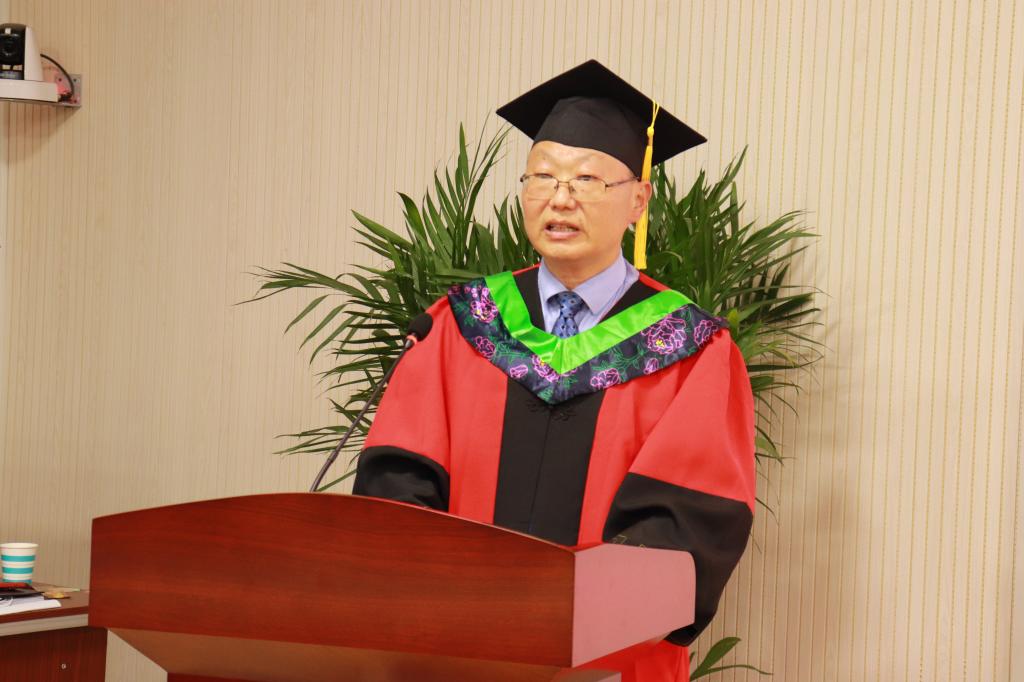 茶学院党总支书记、院长郭桂义发表了热情洋溢的讲话,饱含深情地为本届毕业生上了最后一课。他代表学院全体师生向2022届毕业生表示热烈的祝贺,悉数了本届毕业生四年在校期间学院取得成绩和疫情期间同学们在专业学习上做出的努力、在文体活动中获得的荣誉,对同学们在大学期间对学院的发展做出的贡献表达了感谢。并以自己近40年的工作经历和体会,对同学们提出两点建议,第一,以积极主动的心态去做事。希望同学们不要在本该挑战自我的年纪选择了舒适安逸,选择了“躺平”。第二,脚踏实地,从小事做起。希望同学们脚踏实地,行稳致远,“用脚步丈量祖国大地,用眼睛发现中国精神,用耳朵倾听人民呼声,用内心感应时代脉搏,”在湍急的时代潮流中认清发展趋势,在纷扰繁杂的变化中把握发展规律,一步一个脚印,脚踏实地走好每一步,在实干中找到自身位置,勇做走在时代前面的奋进者、开拓者、奉献者。希望同学们牢记“志向立高远 学问做精细”的校训,不忘初心,脚踏实地,努力成为学校的金色名片!让信农的“茶香”飘得更远!