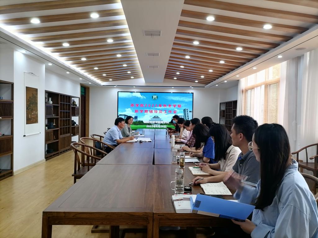 为进一步加强辅导员队伍建设,安排新学期辅导员工作,提升辅导员工作效率,促进2022级新生辅导员尽快找准定位、适应岗位,8月26日下午,茶学院在1C201召开了2022年秋冬学期辅导员工作会,党总支书记郭桂义及全体辅导员参加会议,会议由党总支副书记朱建梅主持。