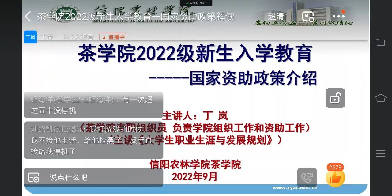 茶学院开展2022级新生入学教育之国家资助政策解读