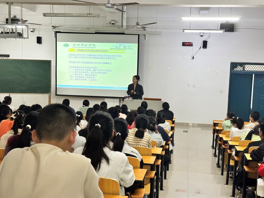 会上,丁岚为新生介绍了学校各项资助政策的具体内容,就国家奖学金、国家励志奖学金、校内奖学金、助学金、困难补助、勤工助学岗位设置以及兵役代偿等相关政策做了宣传。并就各项国家资助政策和困难学生申报流程,各项资助政策相关的申请条件、申请程序、注意事项、认定标准、评议制度等各方面事宜进行了详细的解读。同时,宣传了国家助学贷款政策,仔细讲解了生源地与校园地的区别;最后还告知学生校园贷的危害和各种电信诈骗。(撰稿人/丁岚 摄影/茶学院新媒体 )