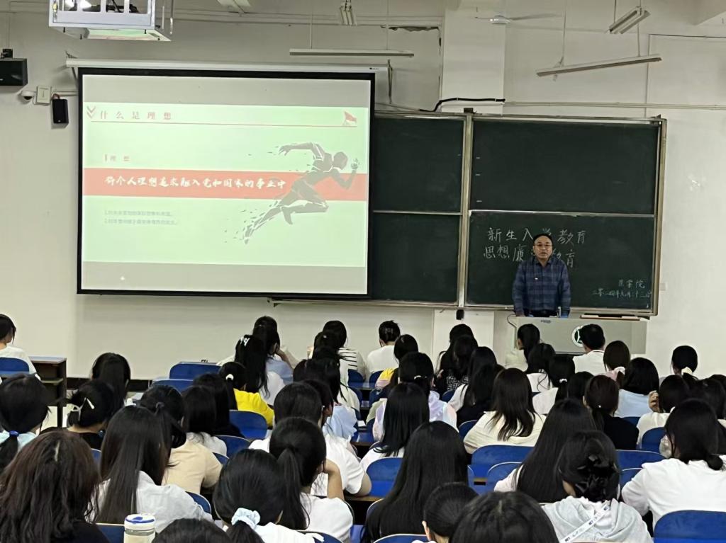 绿树成荫绕校园,金秋送爽启新篇。为传承学校百年优秀历史文化,培养学生爱校荣校的意识,进一步加强新时代廉洁文化建设,厚植学校廉洁奉公文化基础,9月23日,茶学院于E102开展新生入学教育之思想教育及廉洁教育专题讲座,由学院党总支书记王鹏老师主讲,2024级新生全体参与。