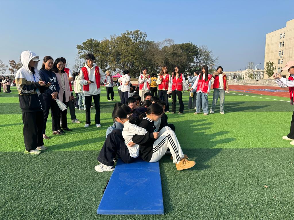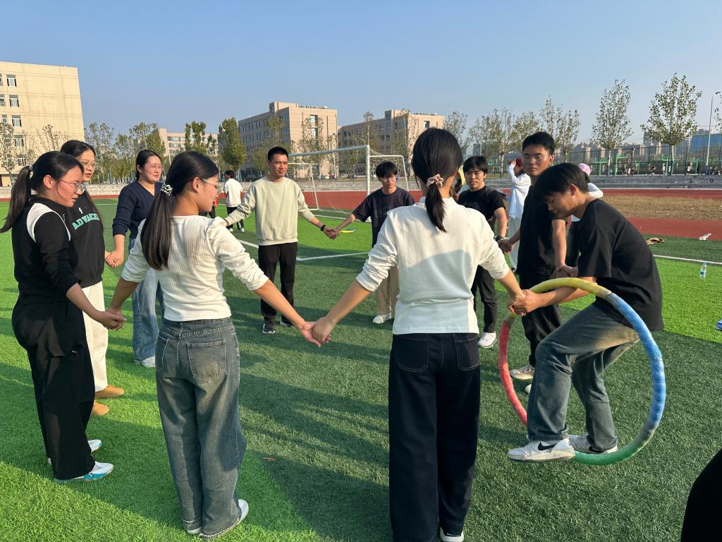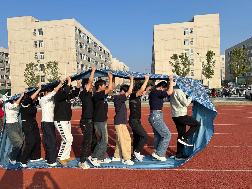 团队的学生成员,由前期学院心理素质拓展比赛中表现优异的同学组成。我们建成了有活力、有竞争力的团队,一共参加了活动项目:“无敌风火轮”、“一圈到底”、“珠行万里”、“击鼓颠球”、“袋鼠跳”、“齐心协力”六个项目。师生团队齐心协力,集体协作,在每个项目上都集思广益,以最饱满的精神状态和自信的姿态顺利完成,学生们也了解了自身的潜力和限制,更好地认识自己,形成积极健康的心理素质。