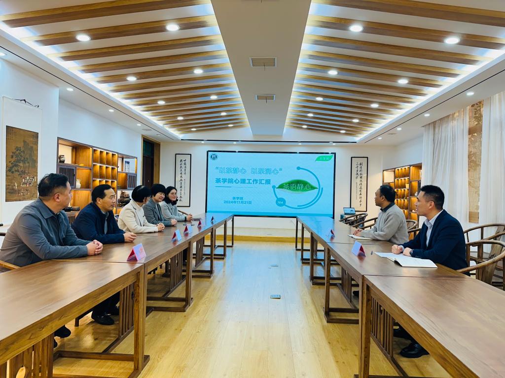 揭牌仪式后,进行了座谈会。座谈会上,茶学院党总支书记王鹏汇报了学院学生工作(心理工作),介绍了心理辅导站的工作目标、特色品牌建设方案。校党委副书记王万玲对茶学院心理辅导站建设给予了肯定,她也对学院心理健康教育工作提出了建议:一是深入思考如何发挥心理辅导站的作用;二是进一步完善心理辅导站的建设使用,为师生营造一个温馨舒适的“暖心家”;三是打造心理健康教育品牌,推动新农科三全育人综合改革向纵深发展。