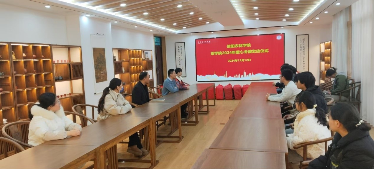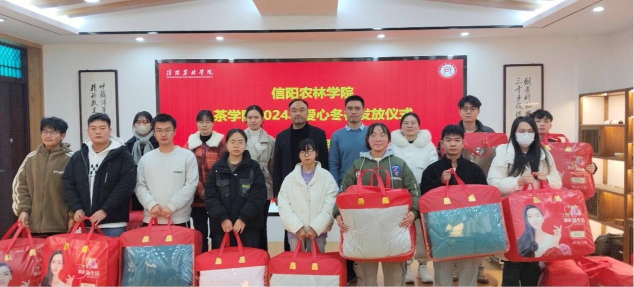 气温骤降、冬意渐浓,为帮助家庭经济困难学生温暖过冬,12月12日下午茶学院在科技楼1C201举行了2024年爱心冬被发放仪式,茶学院党总支书记王鹏、副书记王子浩、专职组织员丁岚、团总支副书记梁玉洁、专职辅导员李梦婷及茶学院受助学生参加。